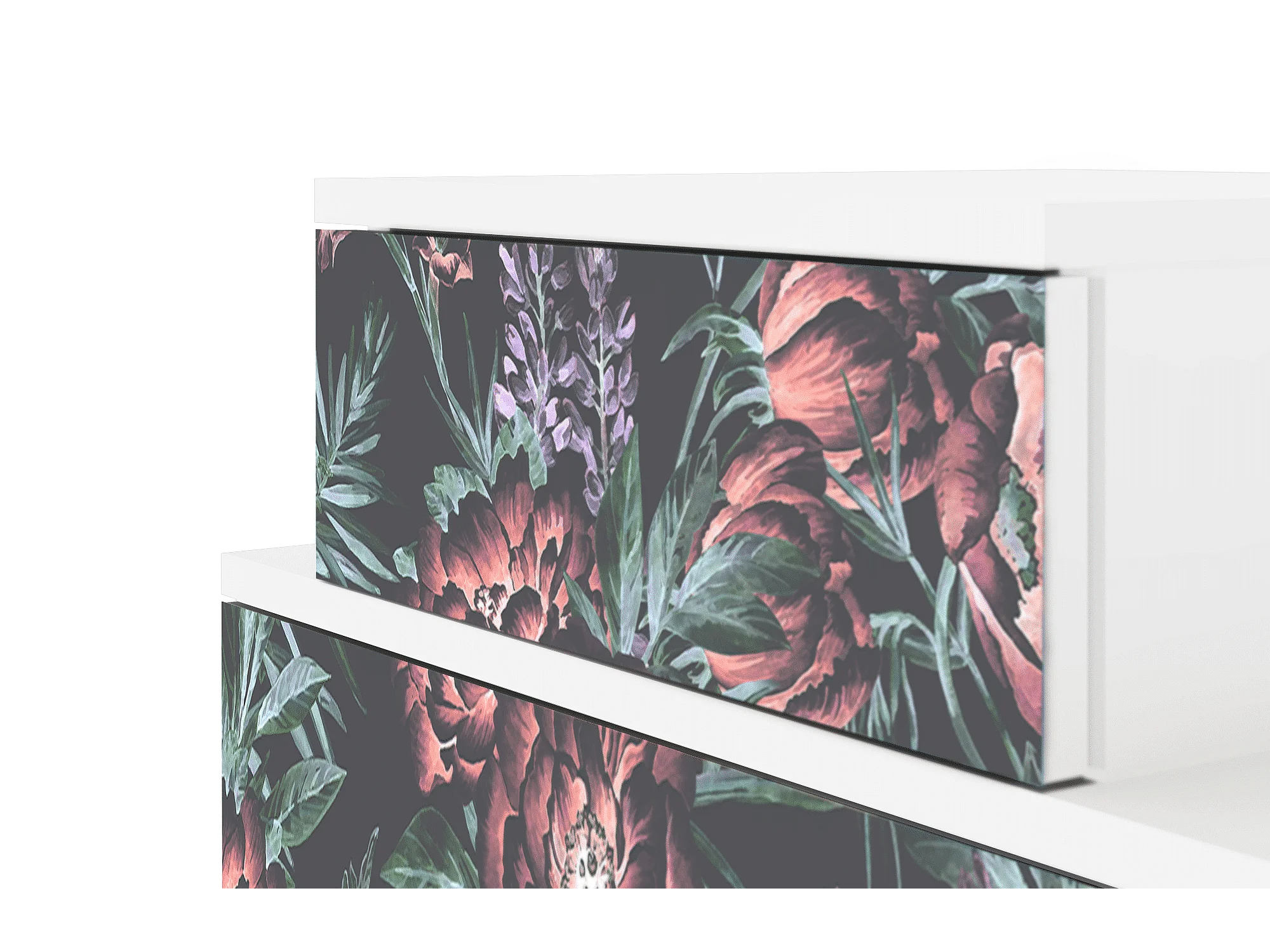 Table de nuit - 58х58х41 cm - NS1 - Dark Peonies, Blanc
