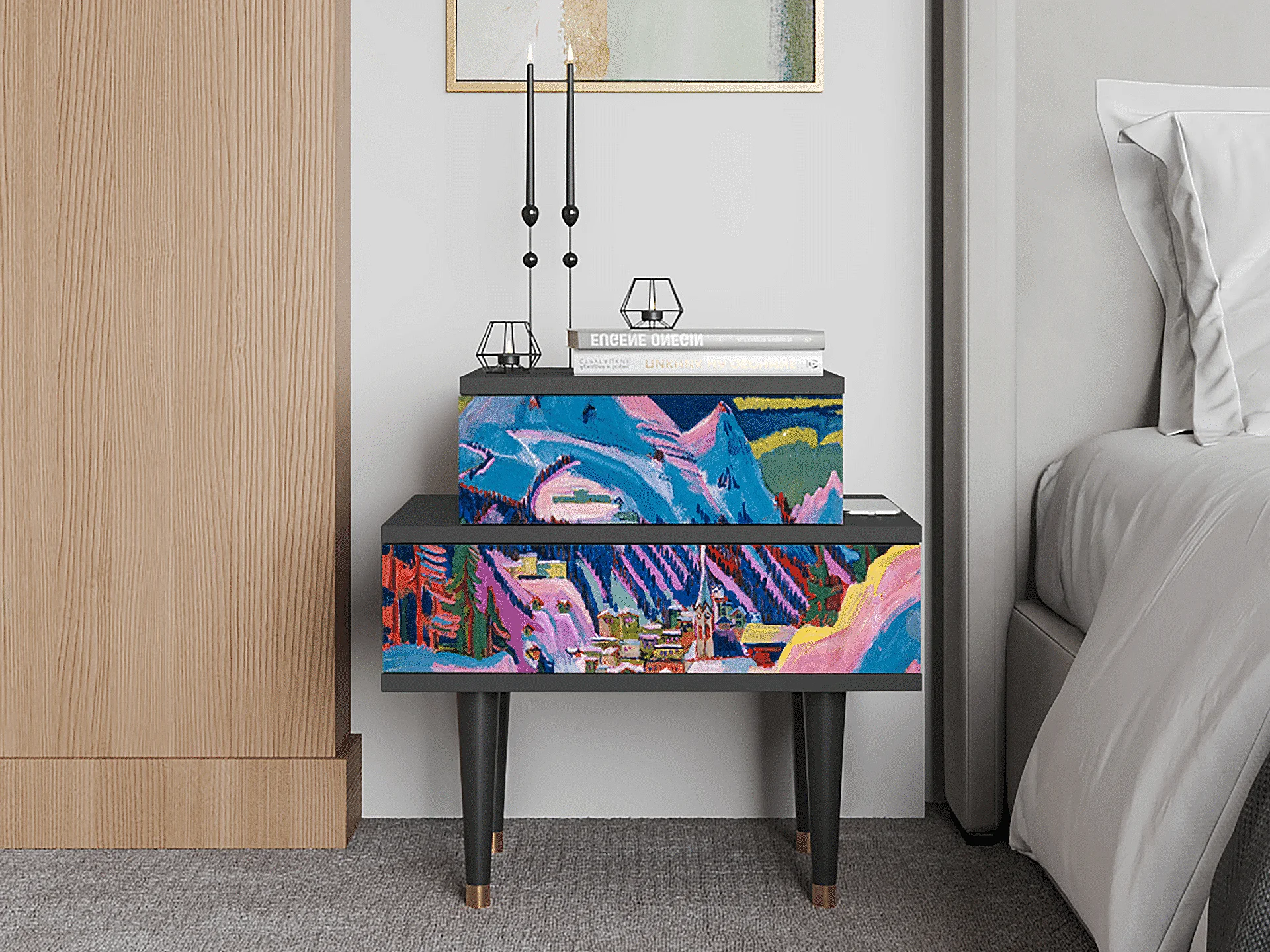 Table de nuit - 58х58х41 cm - NS1 - Davos Winter, Anthracite