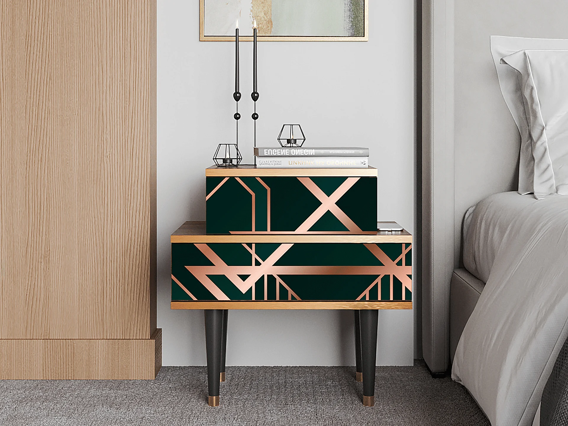 Table de nuit - 58х58х41 cm - NS1 - Emerald Gatsby, Noyer