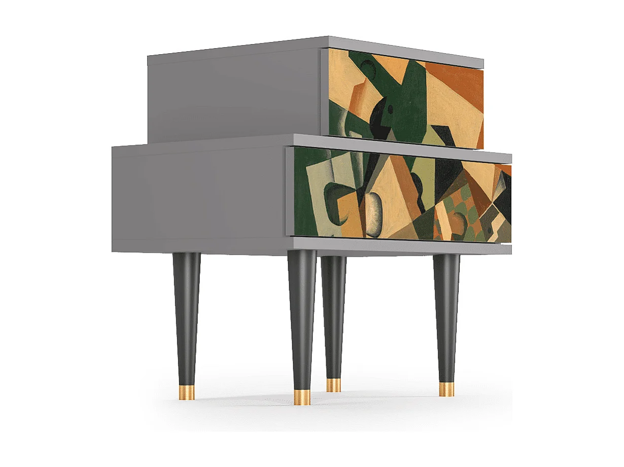 Table de nuit - 58х58х41 cm - NS1 - Glass and Checkerboard, Gris
