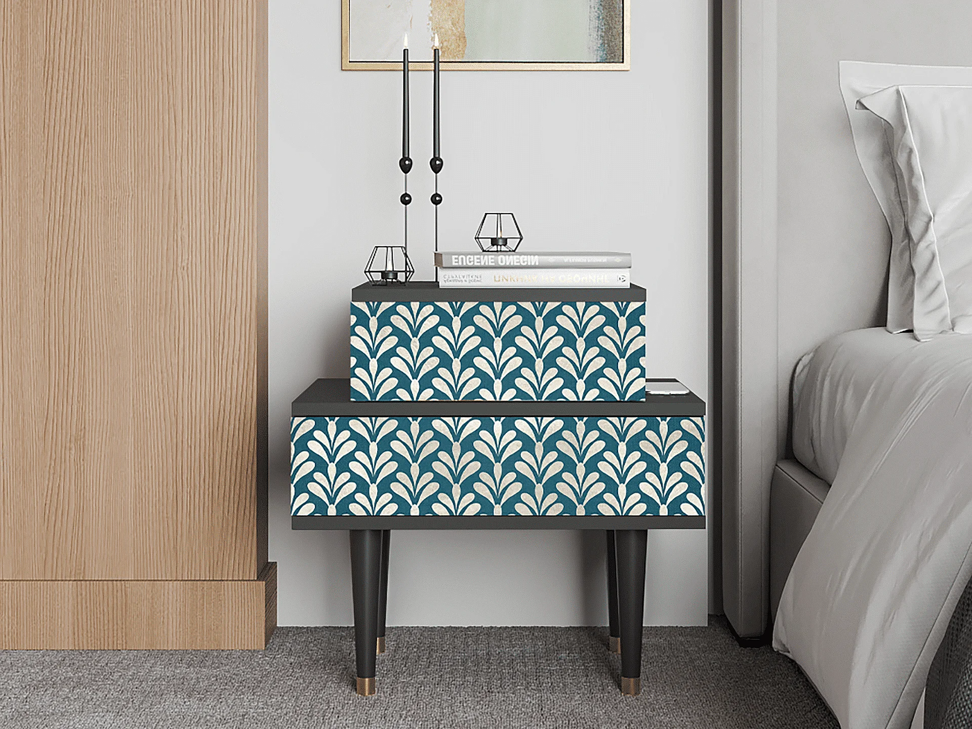 Table de nuit - 58х58х41 cm - NS1 - Milky Tears, Anthracite