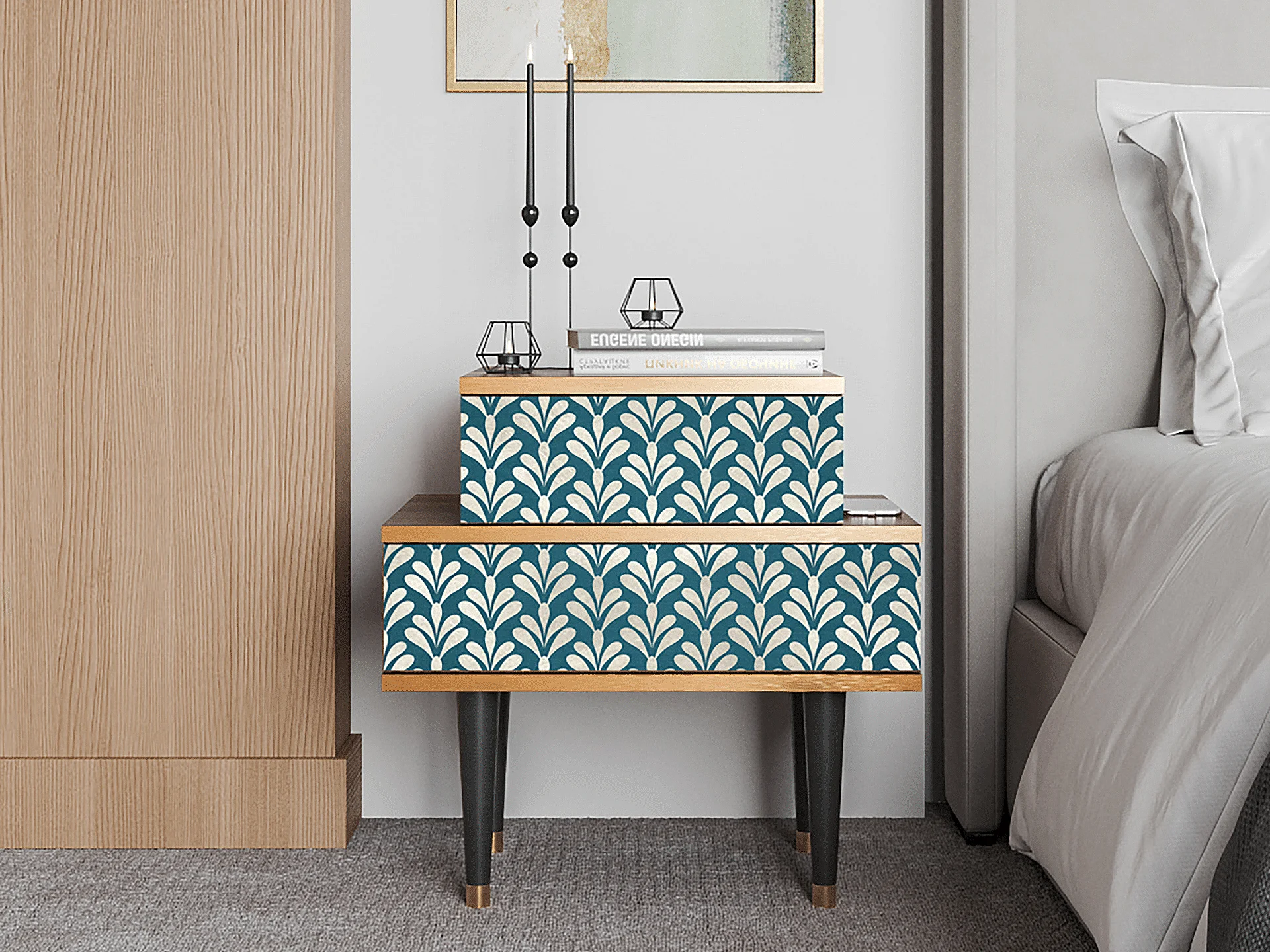 Table de nuit - 58х58х41 cm - NS1 - Milky Tears, Noyer