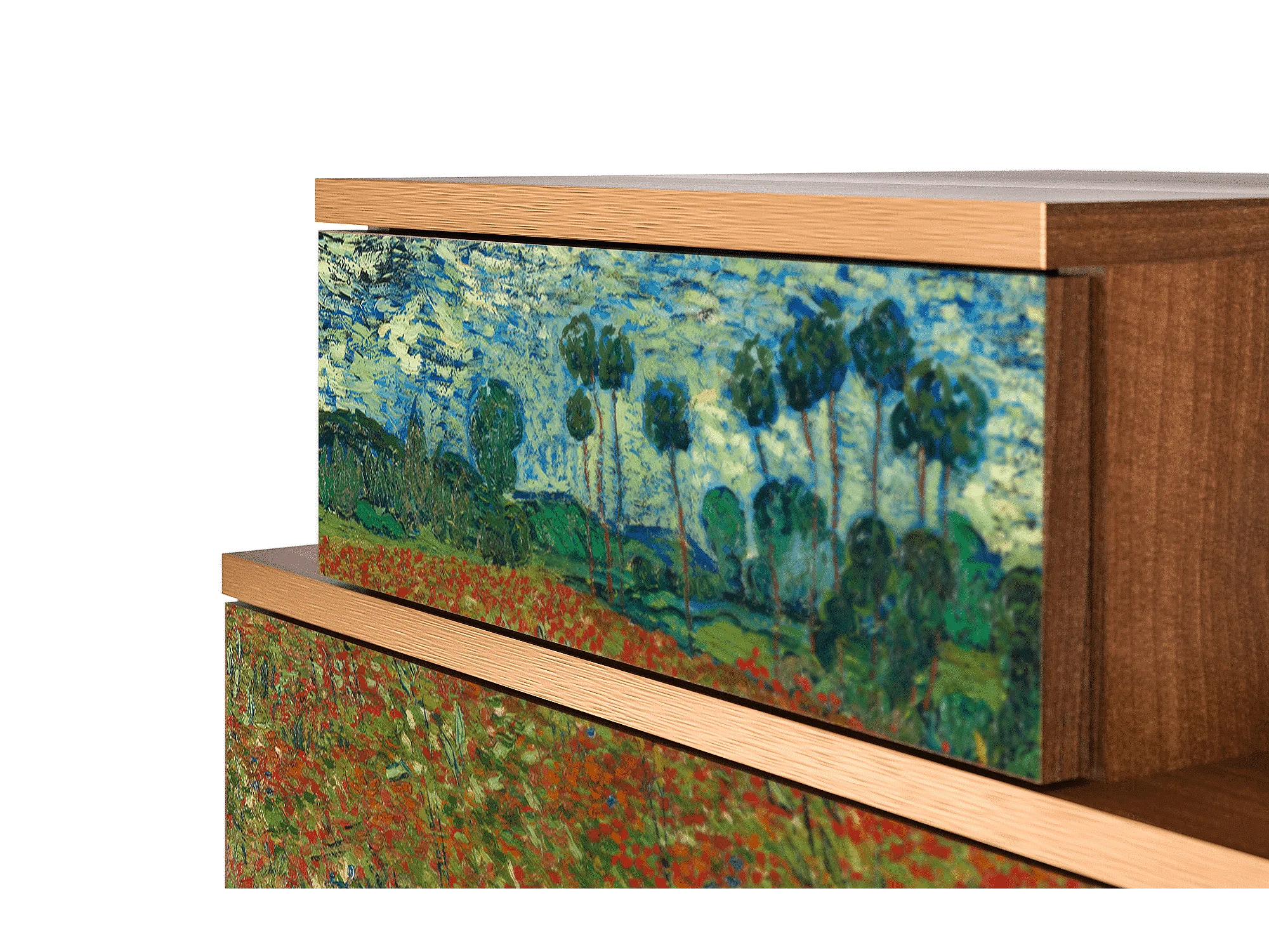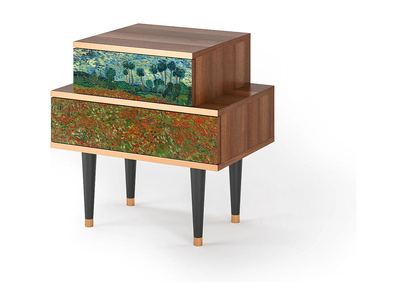 Table de nuit - 58х58х41 cm - NS1 - Poppy field by van Gogh, Noyer