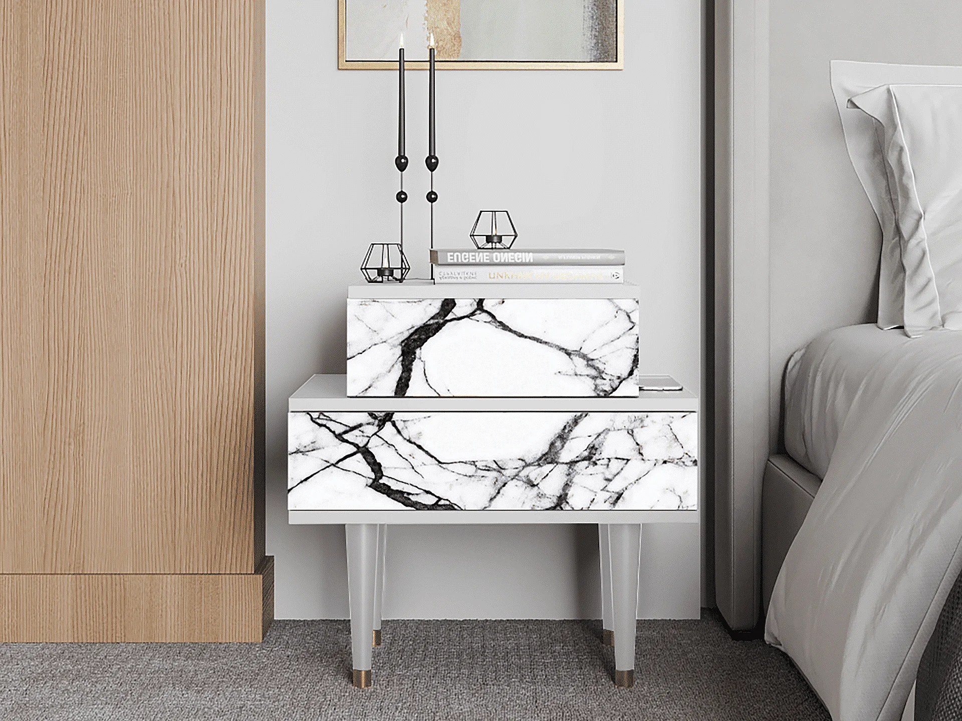 Table de nuit - 58х58х41 cm - NS1 - Raven Marble, Blanc