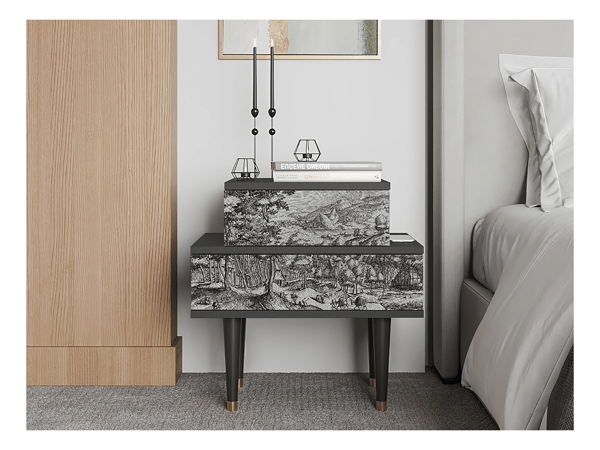 Table de nuit - 58х58х41 cm - NS1 - Gingko leaves, Anthracite