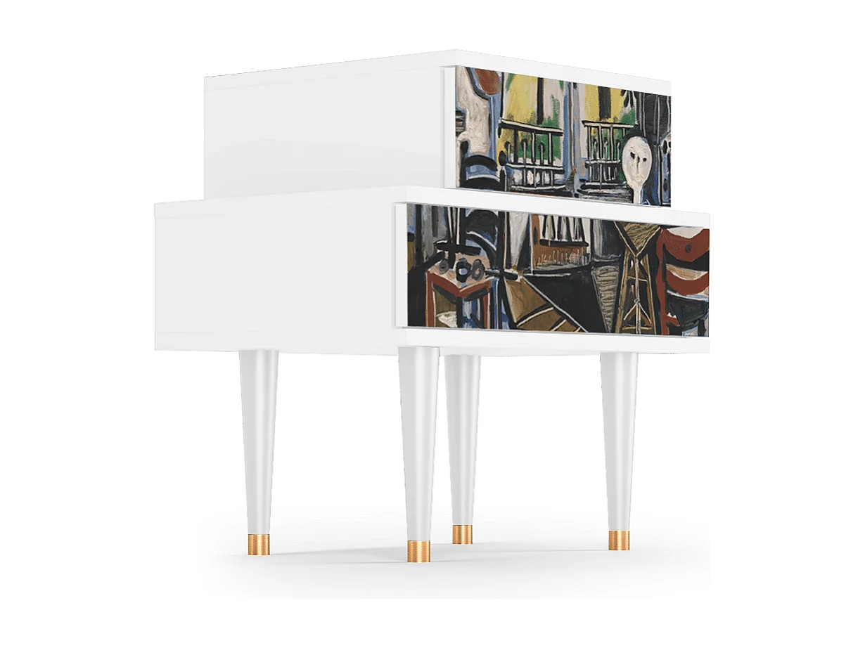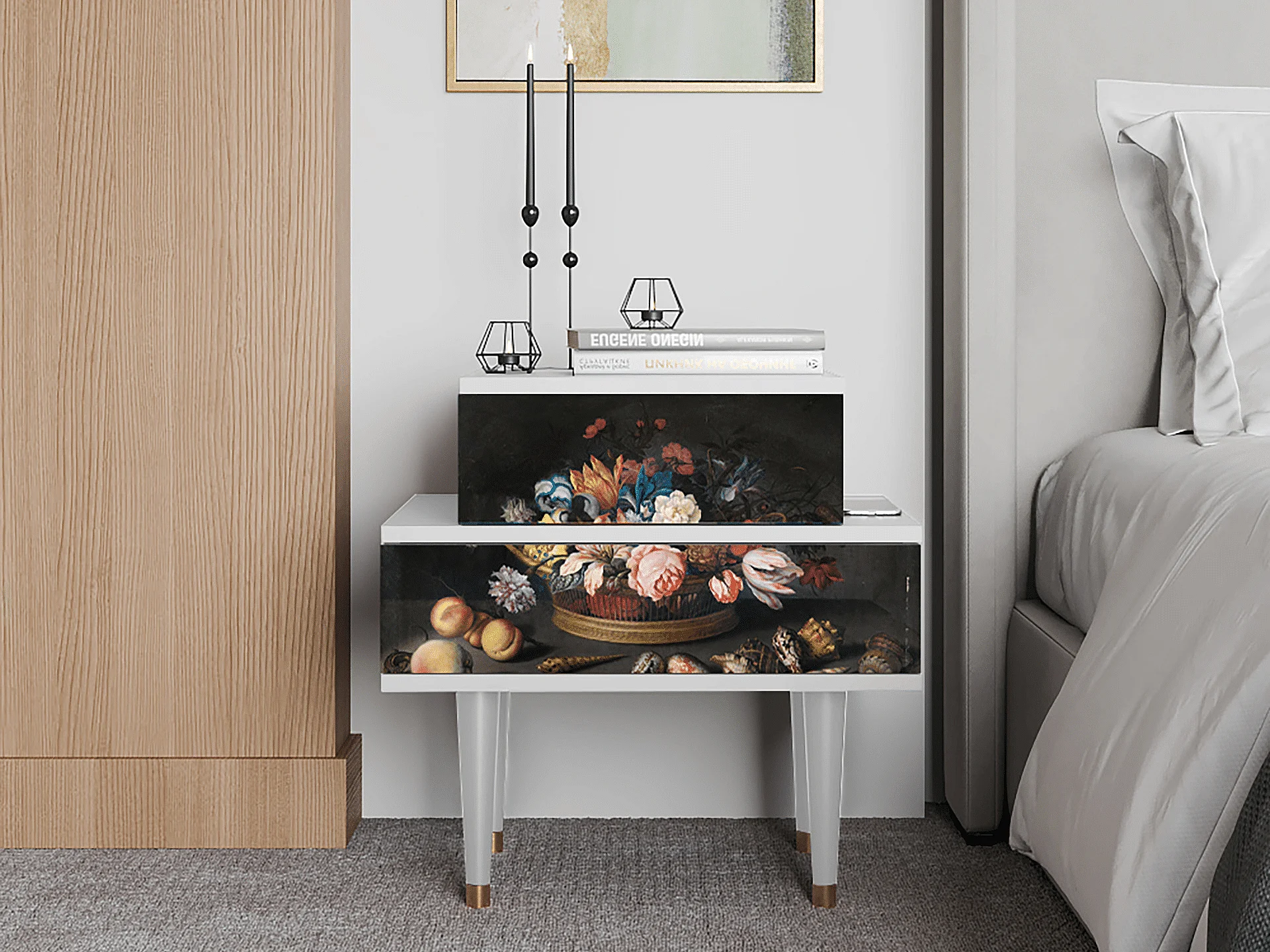 Table de nuit - 58х58х41 cm - NS1 - Still Life with Flowers, Blanc