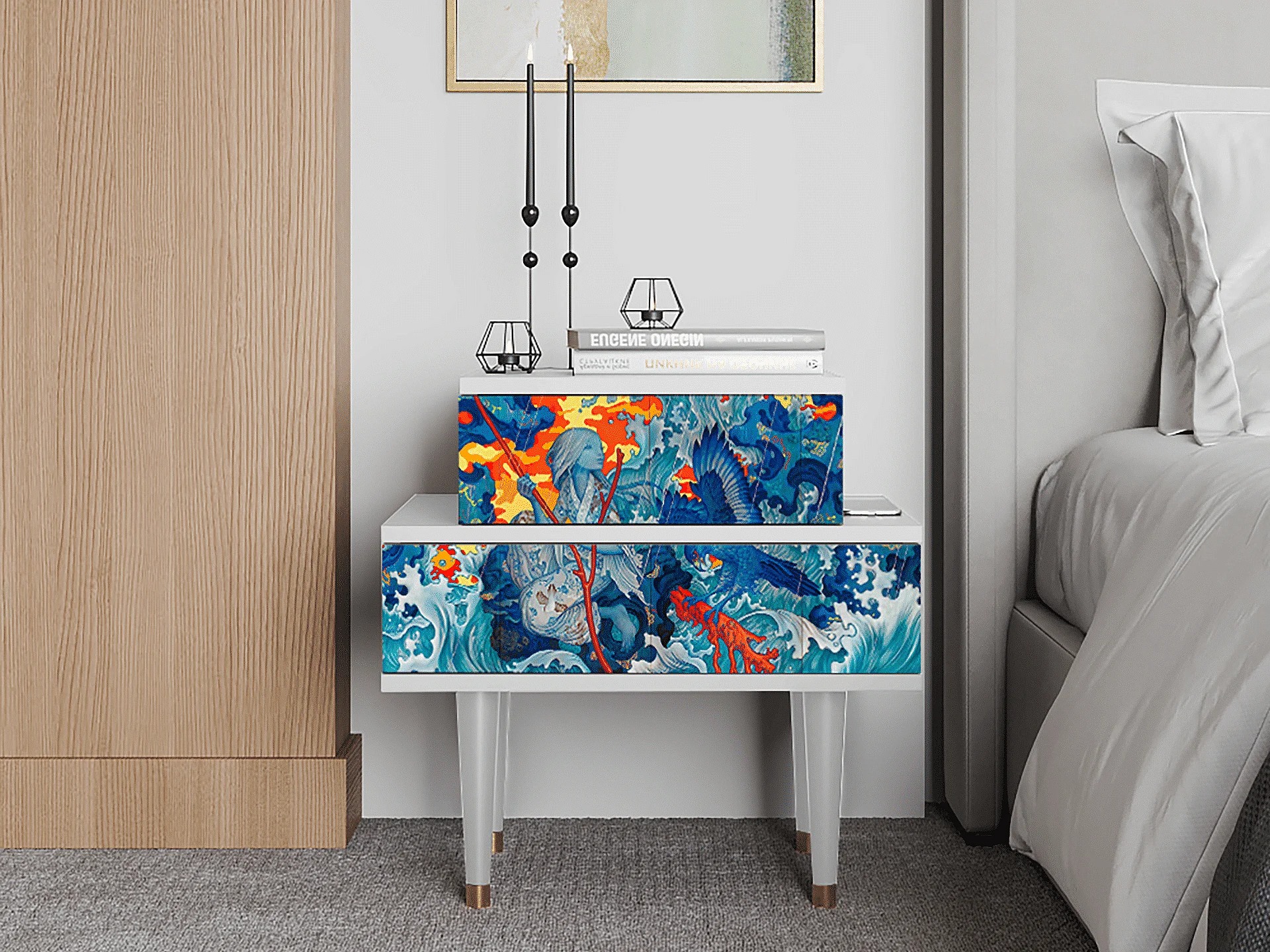 Table de nuit - 58х58х41 cm - NS1 - The Girl - James Jean, Blanc