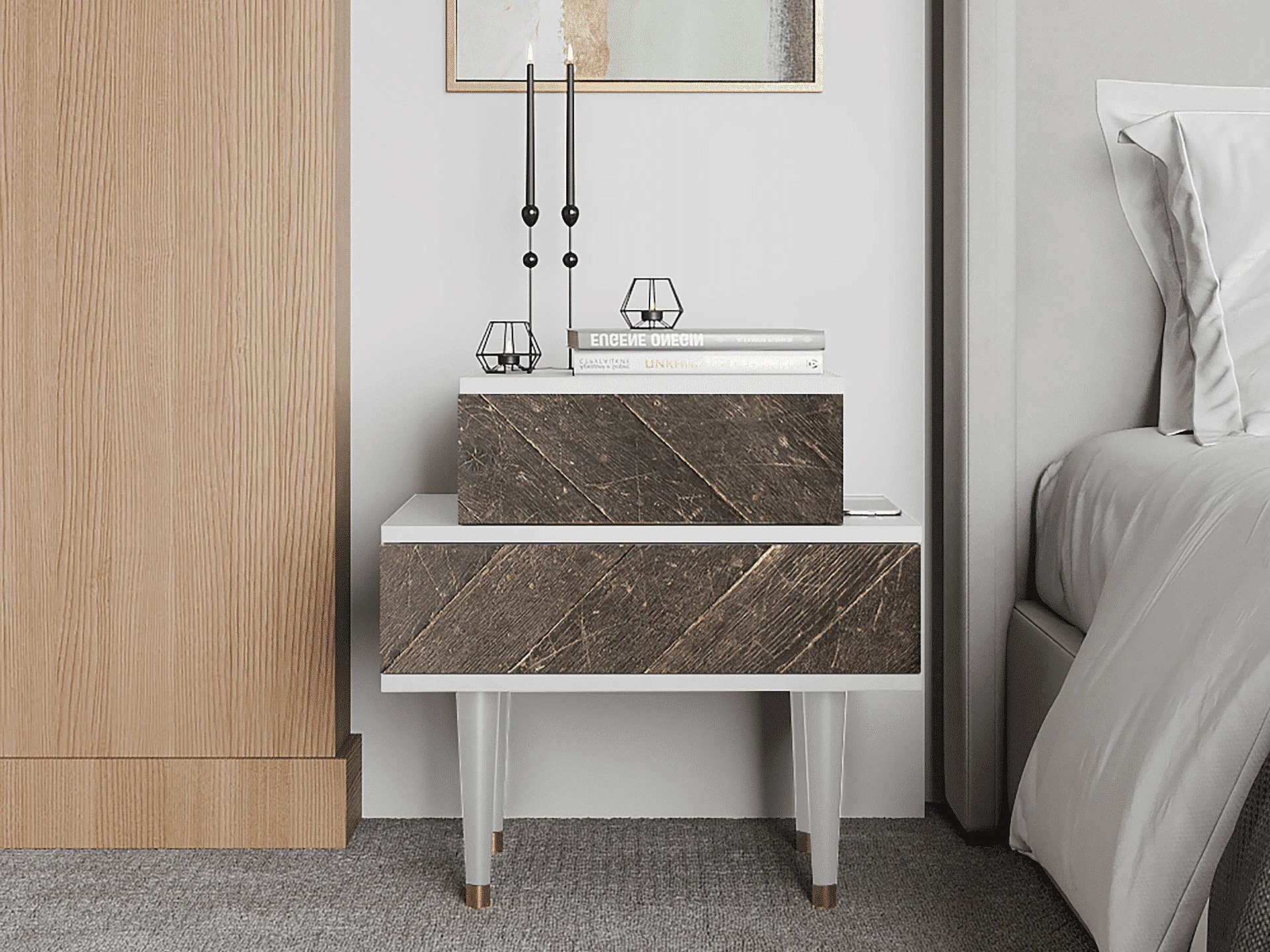 Table de nuit - 58х58х41 cm - NS1 - Golden Smoke, Blanc