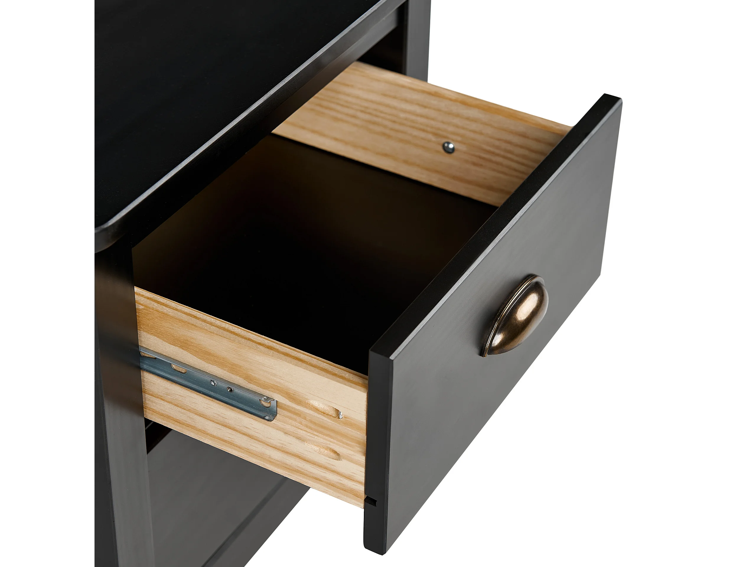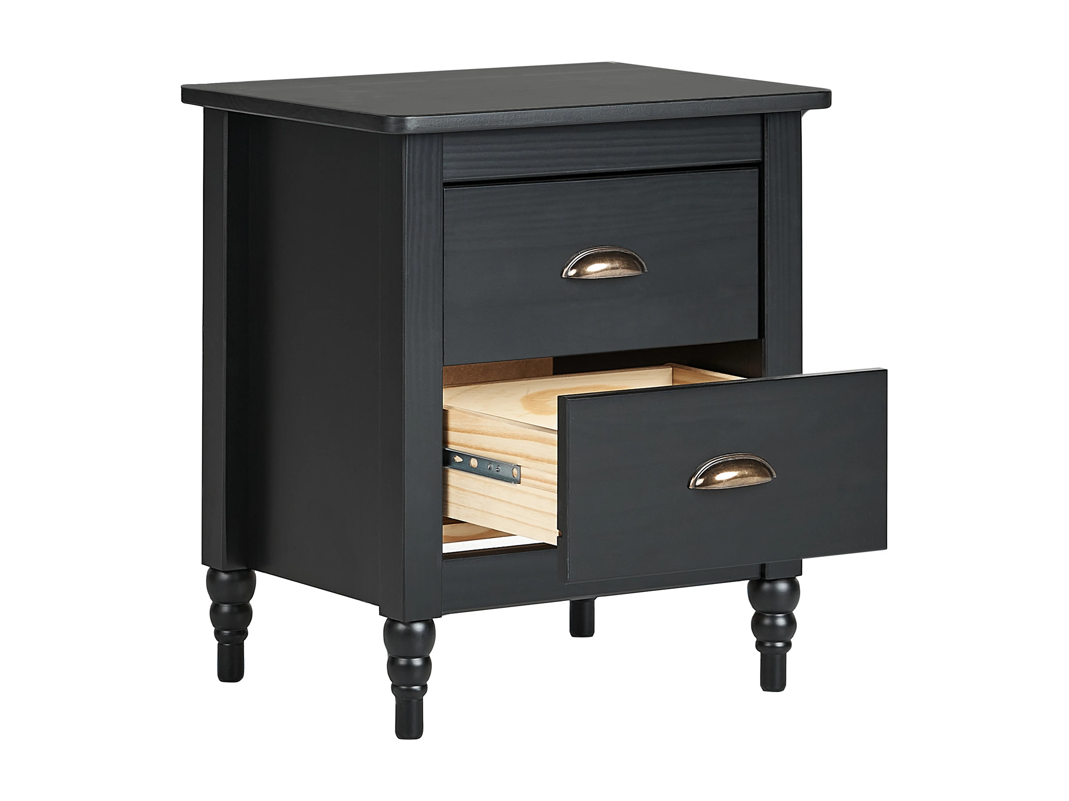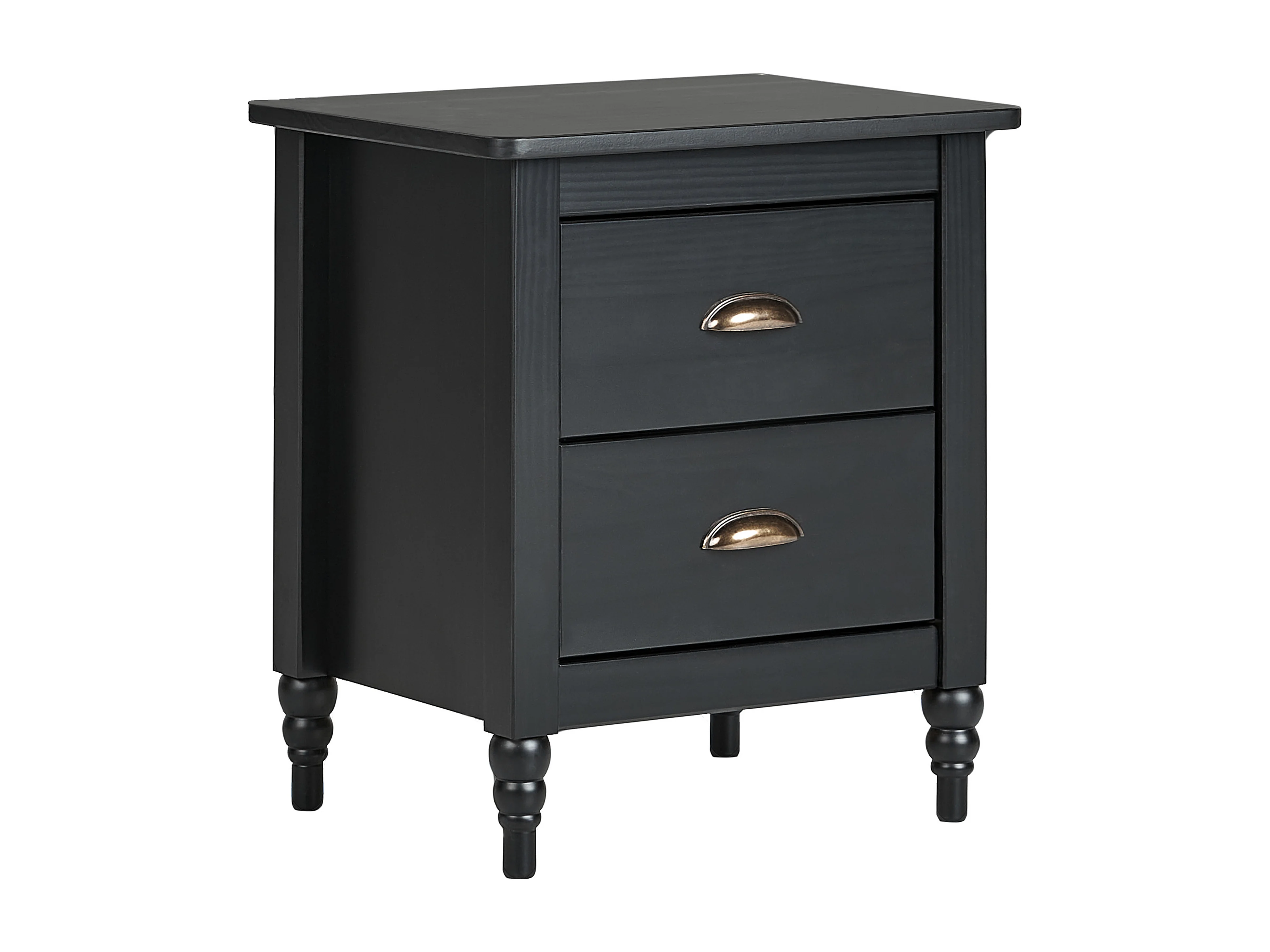 Table de chevet 2 tiroirs bois massif peint noir Bar