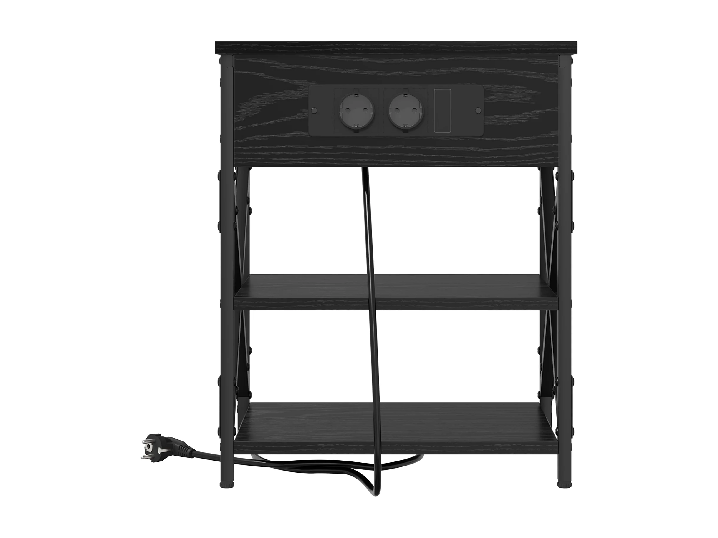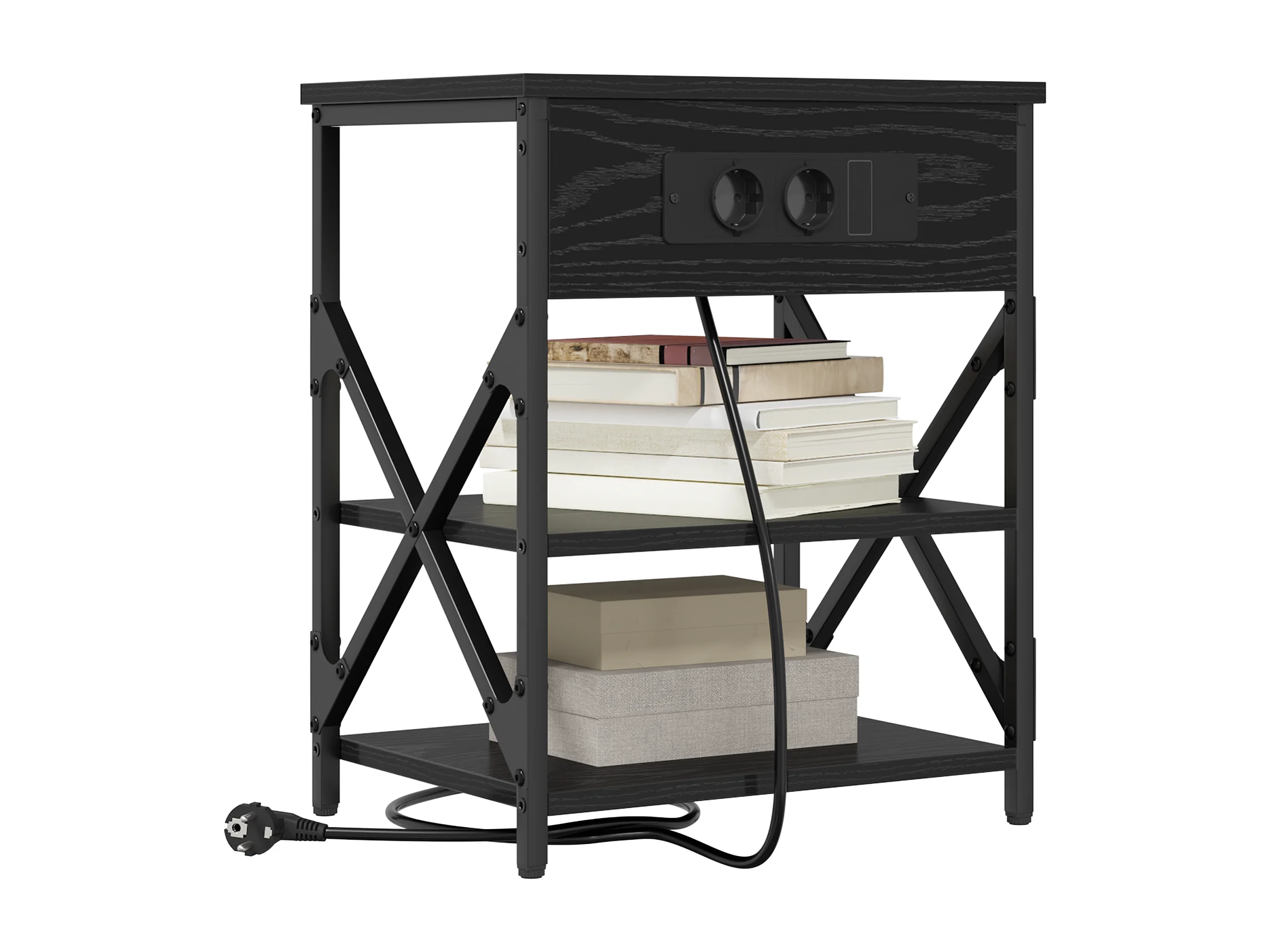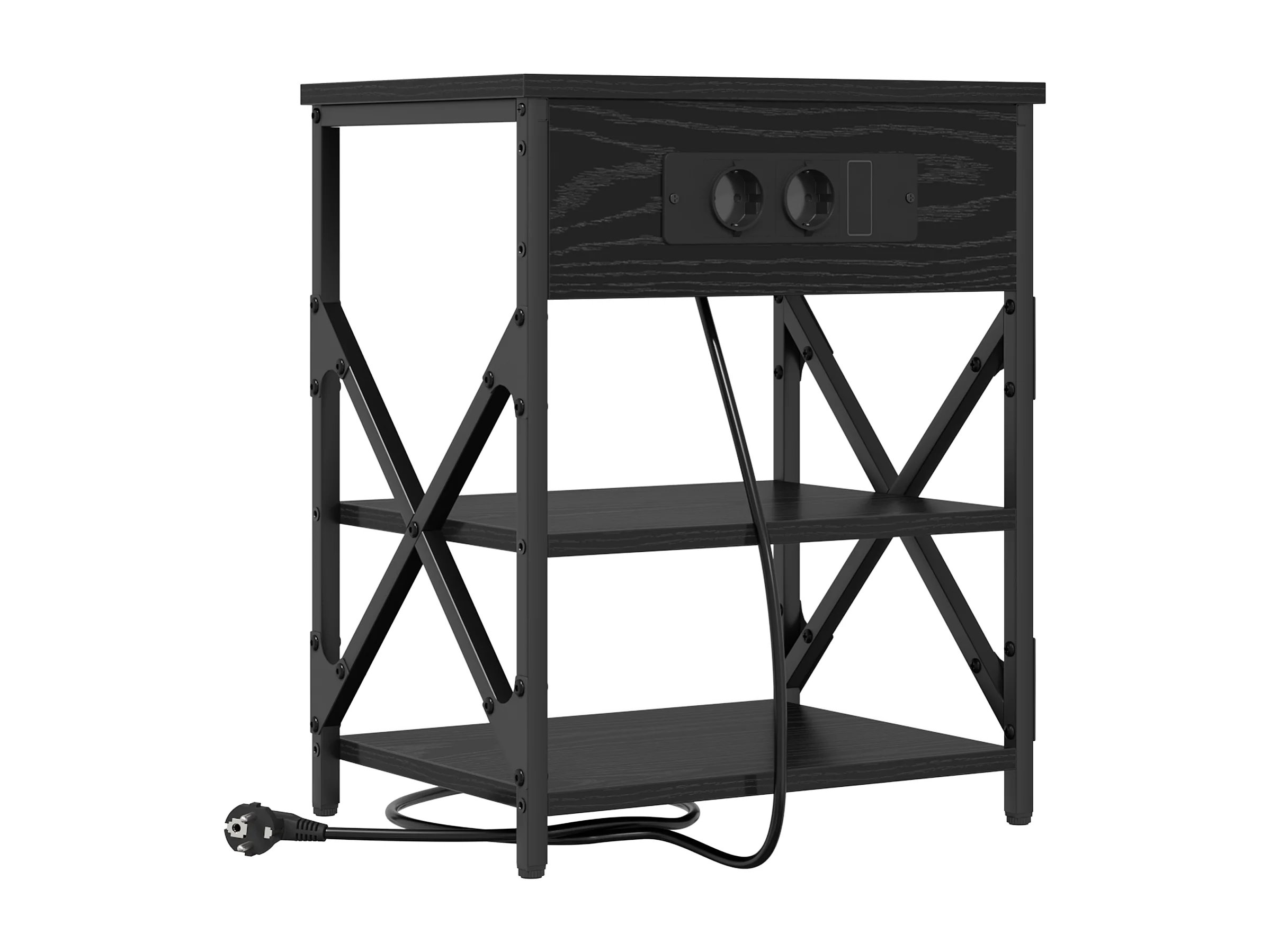 Table de nuit avec station de chargement avec tiroir Chêne noir