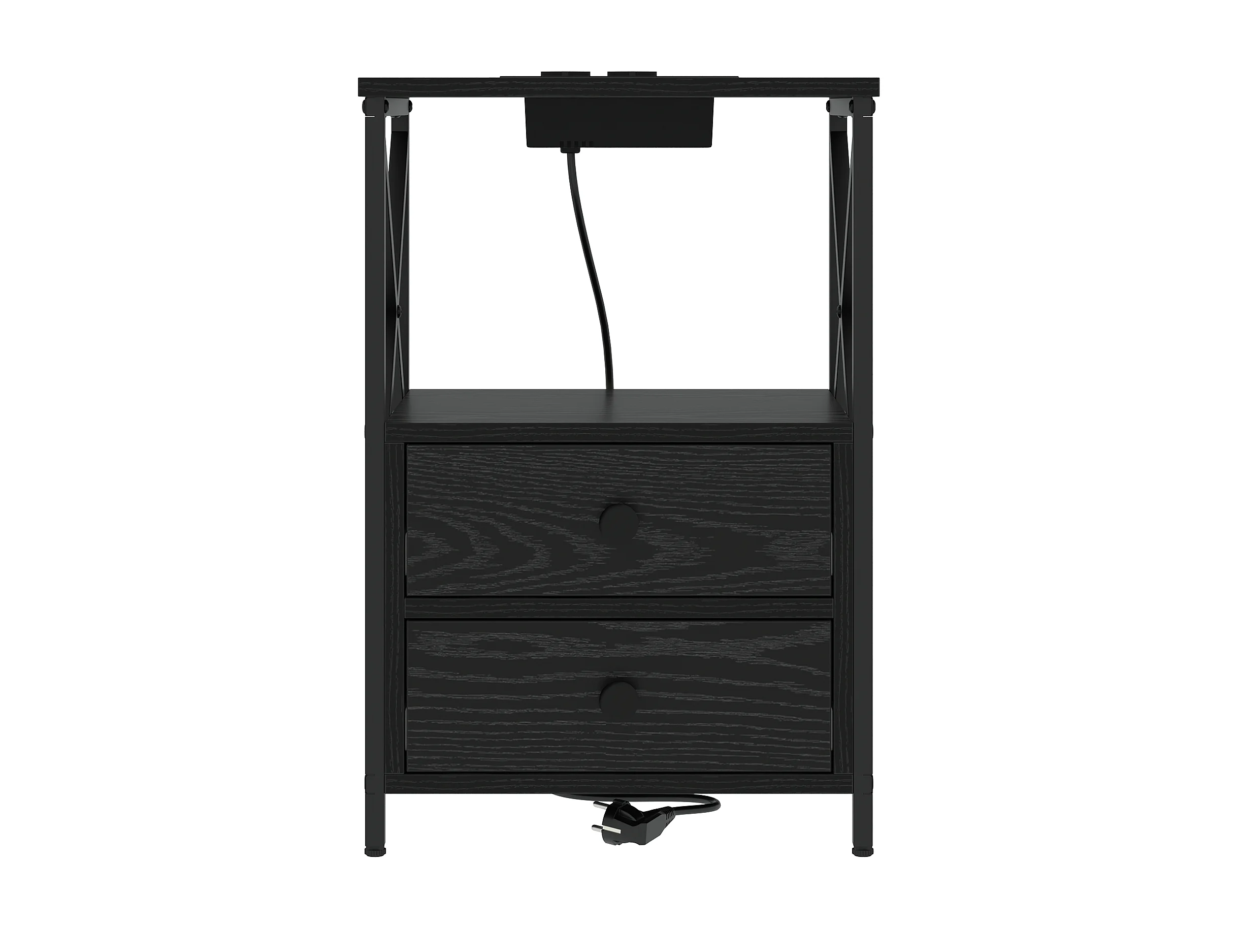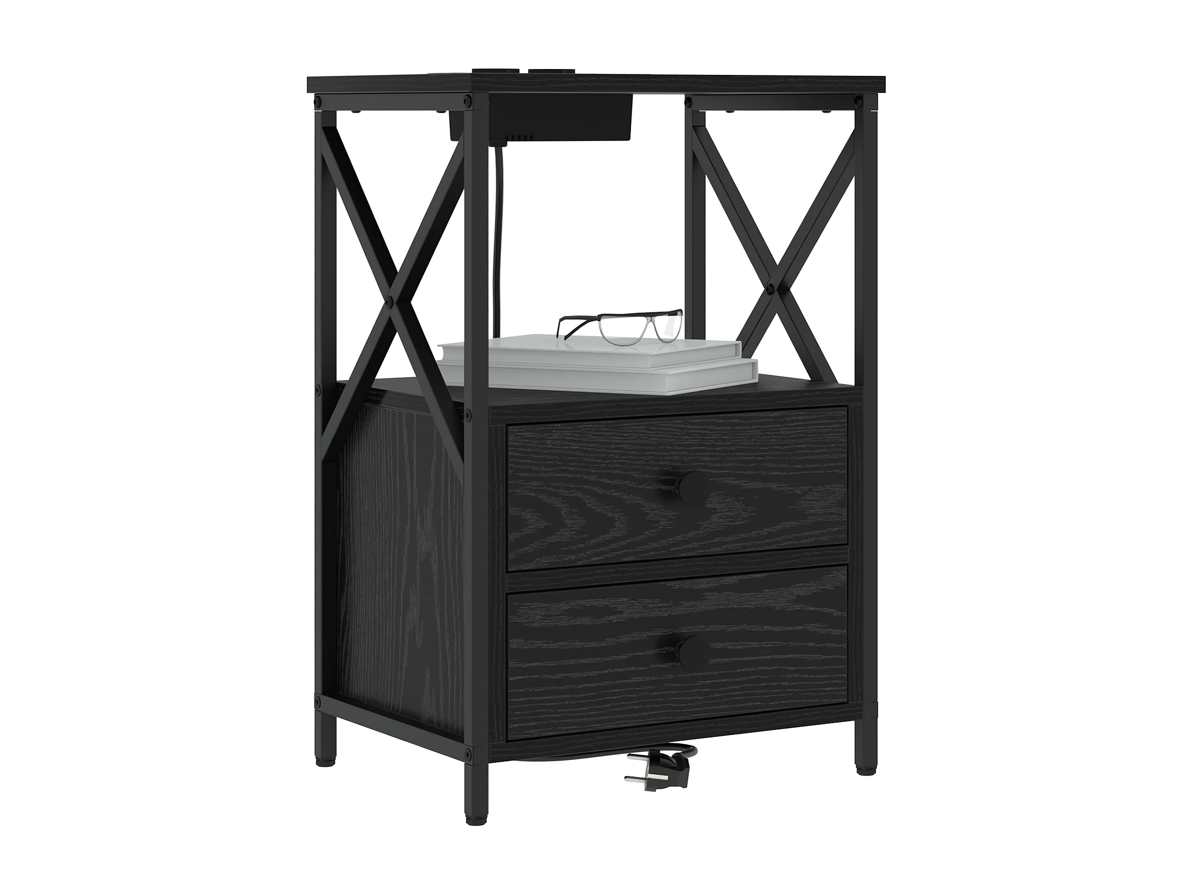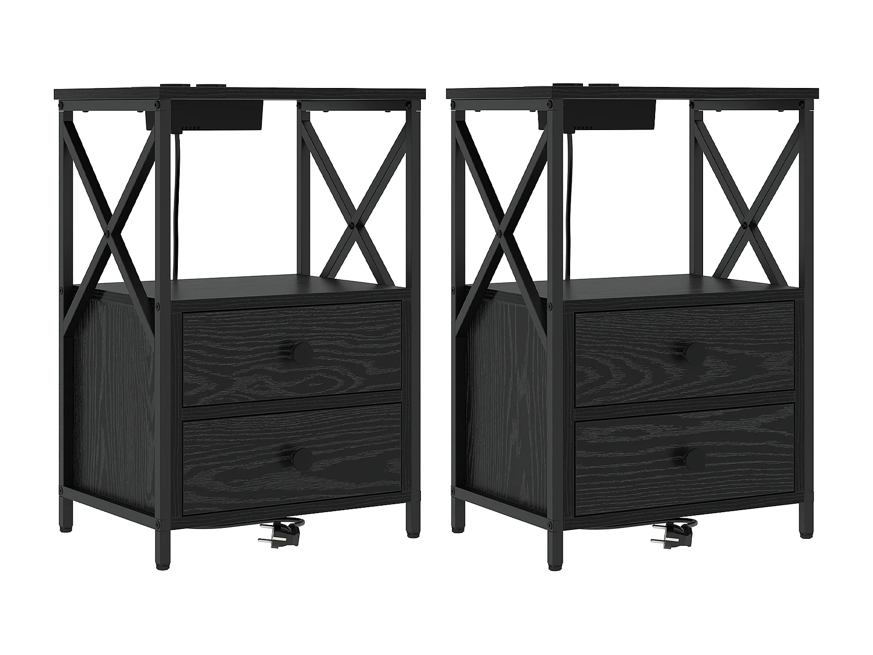 Table de nuit avec station de chargement 2 pcs Chêne noir