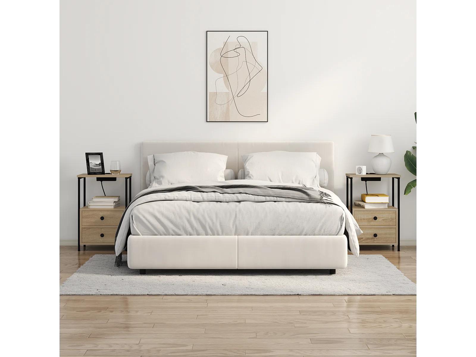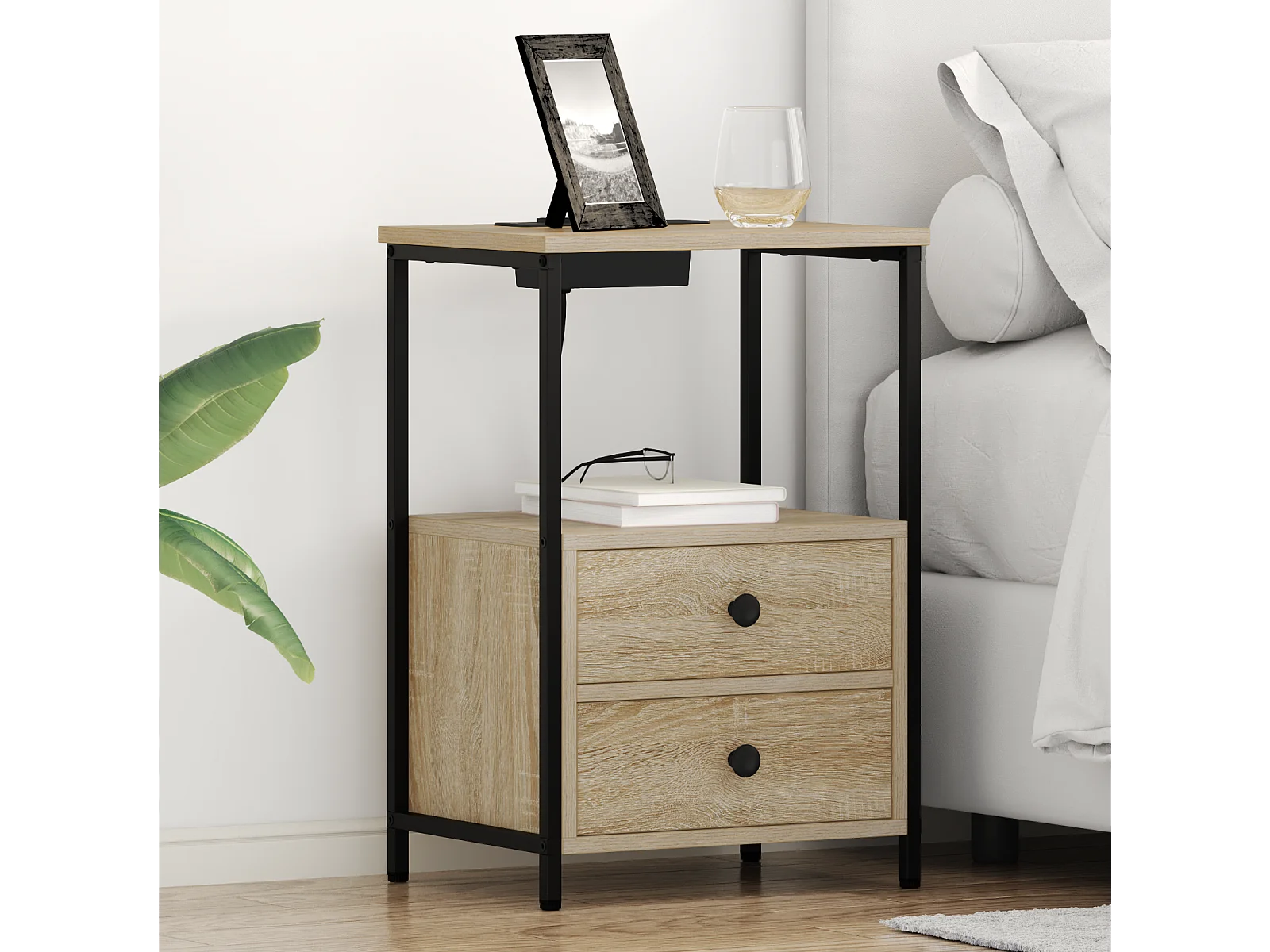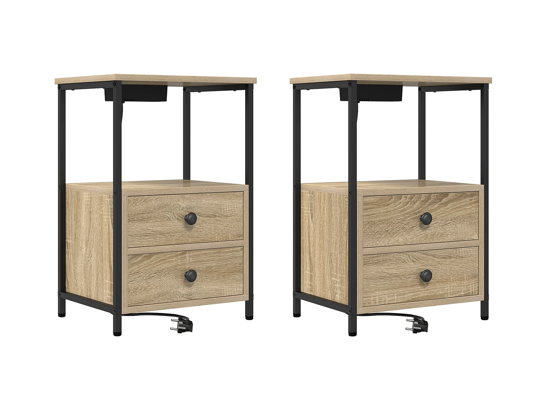 Table de nuit avec station de chargement 2 pcs Chêne sonoma