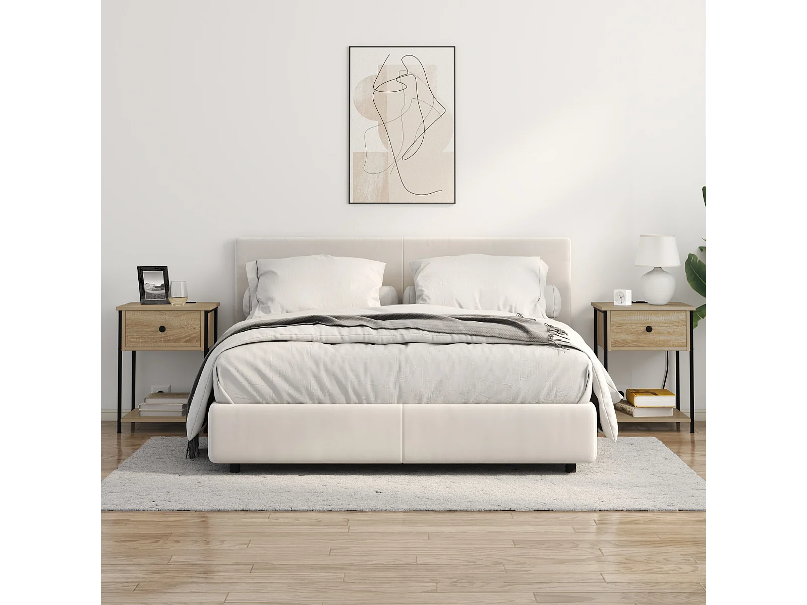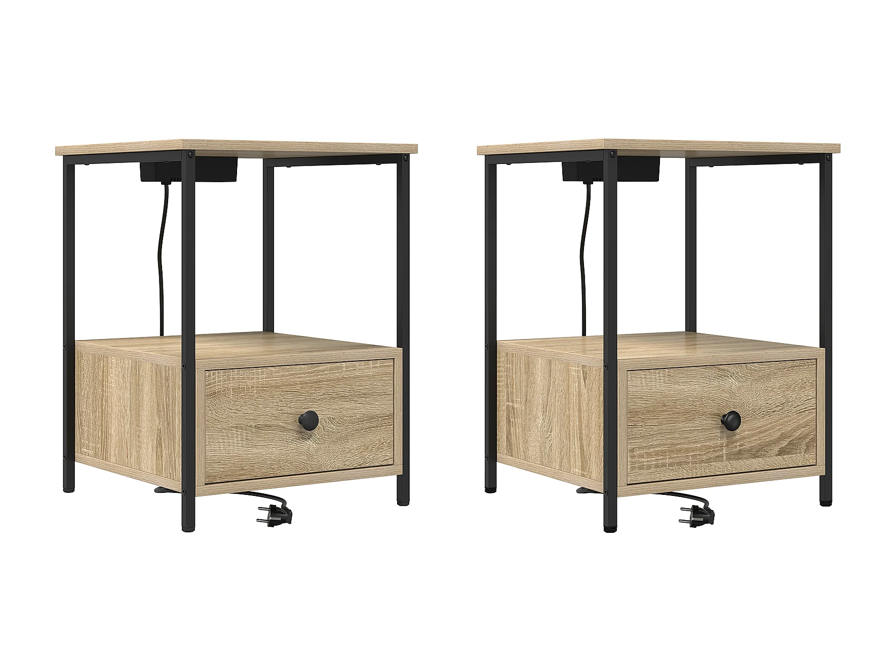 Table de nuit avec station de chargement 2 pcs Chêne sonoma
