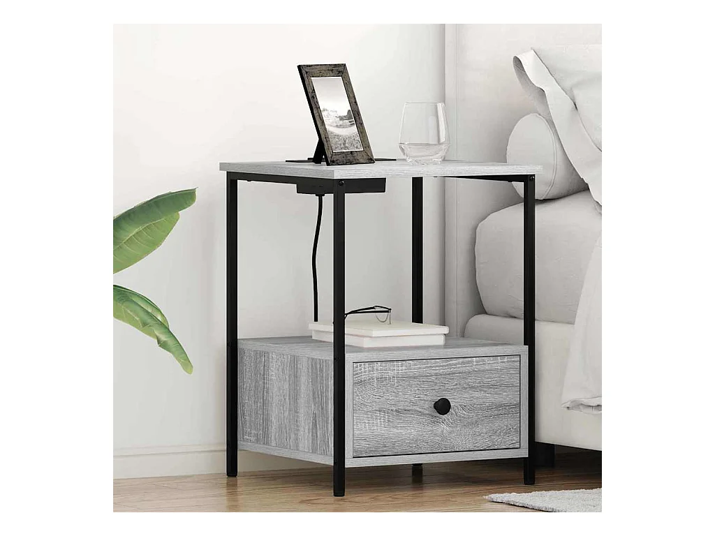 Table de nuit avec station de chargement 2 pcs Sonoma gris