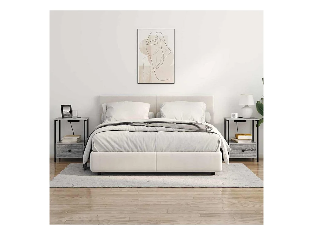 Cabinet de chevet avec tiroir 2 pcs Sonoma gris 42 x 41 x 56 cm