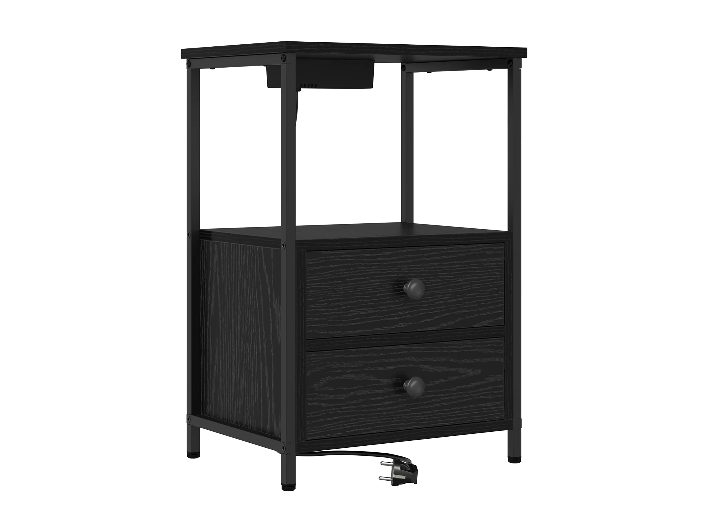 Table de nuit avec station de chargement avec tiroir Chêne noir
