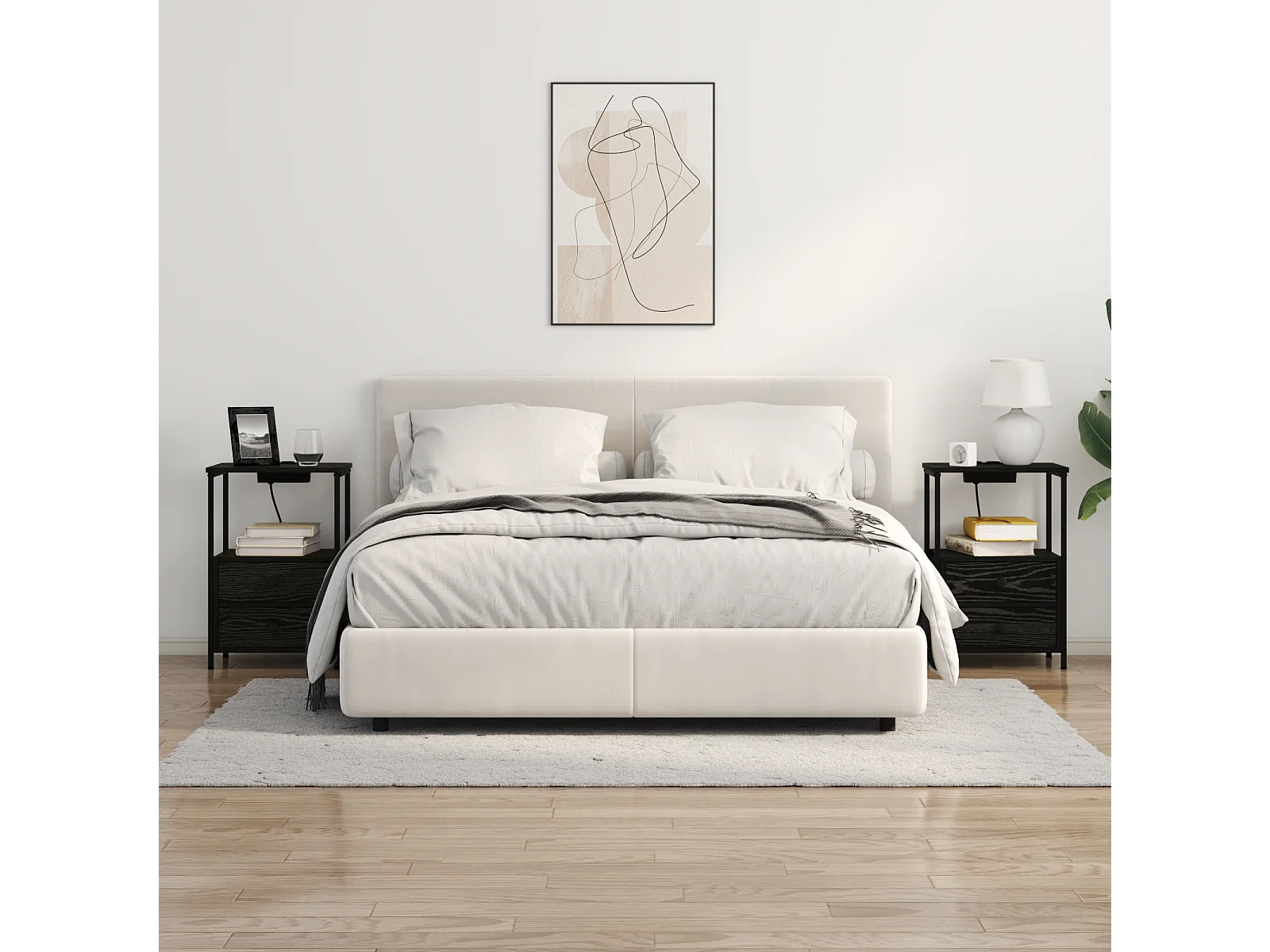 Table de nuit avec station de chargement 2 pcs Chêne noir