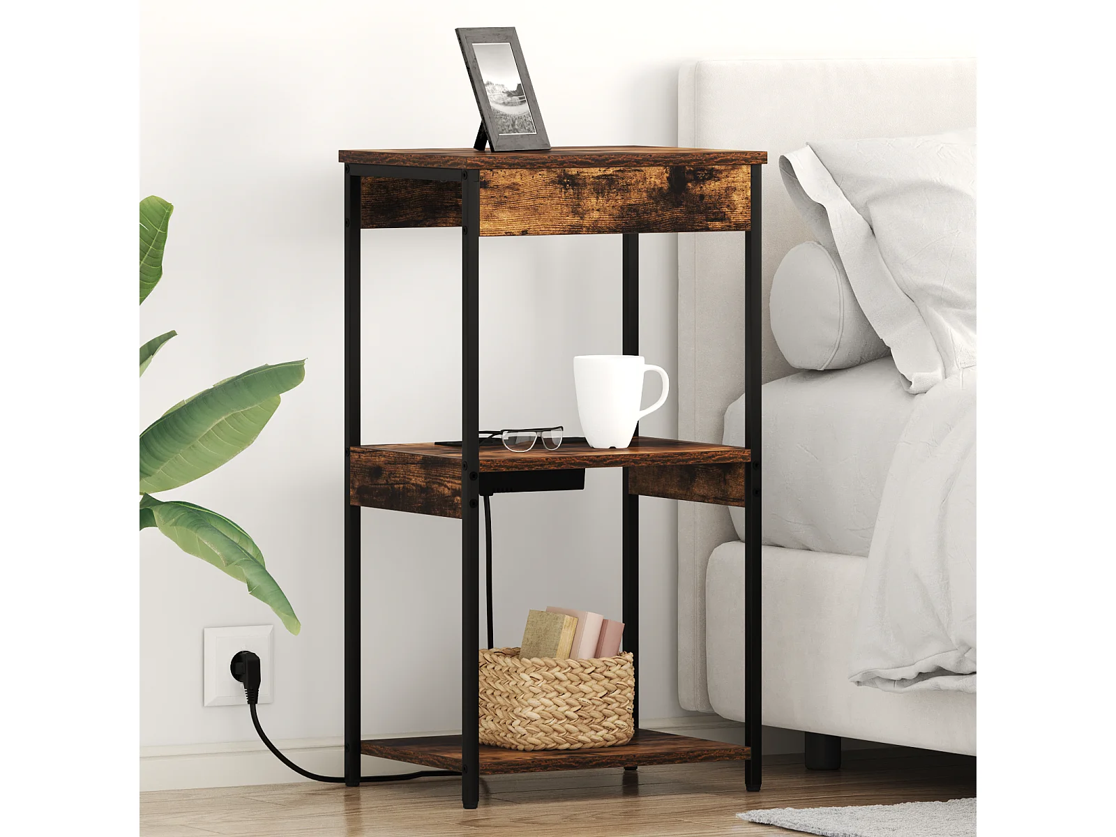 Table de chevet chêne artisanal 41x31x80 cm bois d'ingénierie