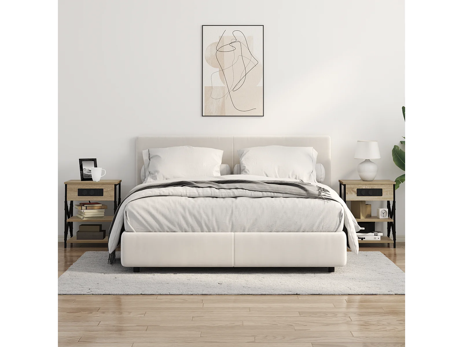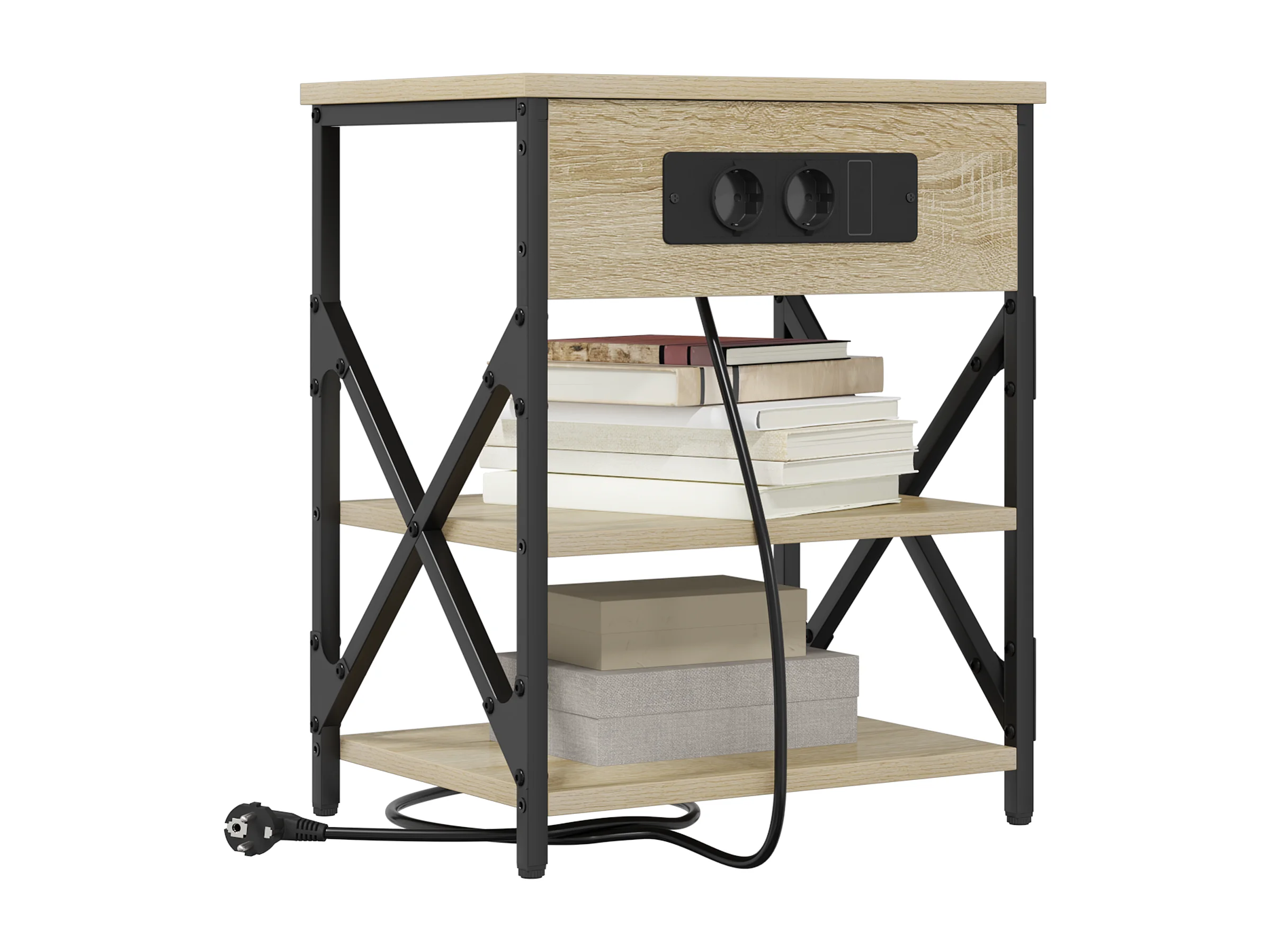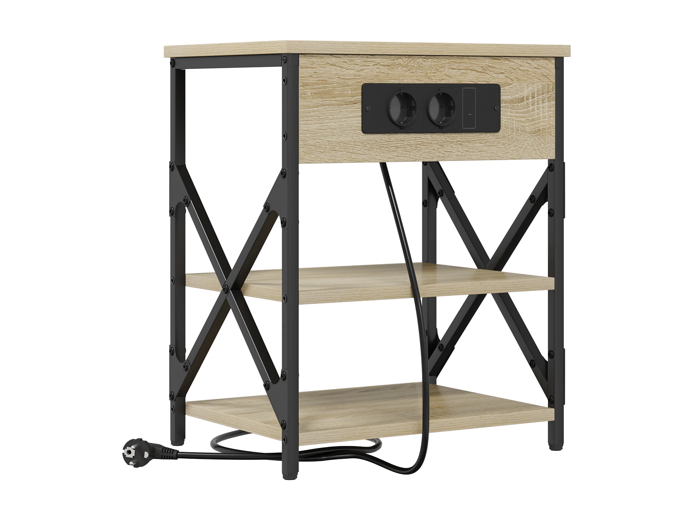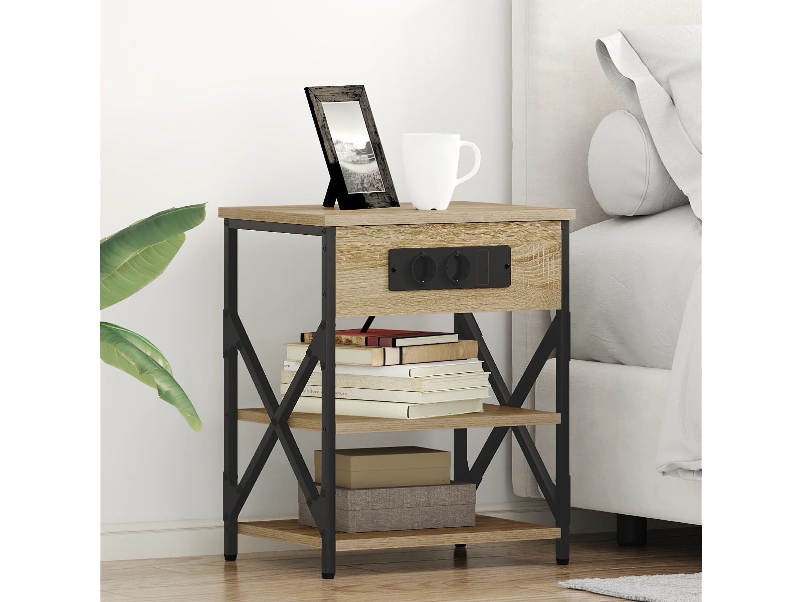 Table de nuit avec station de chargement Chêne sonoma