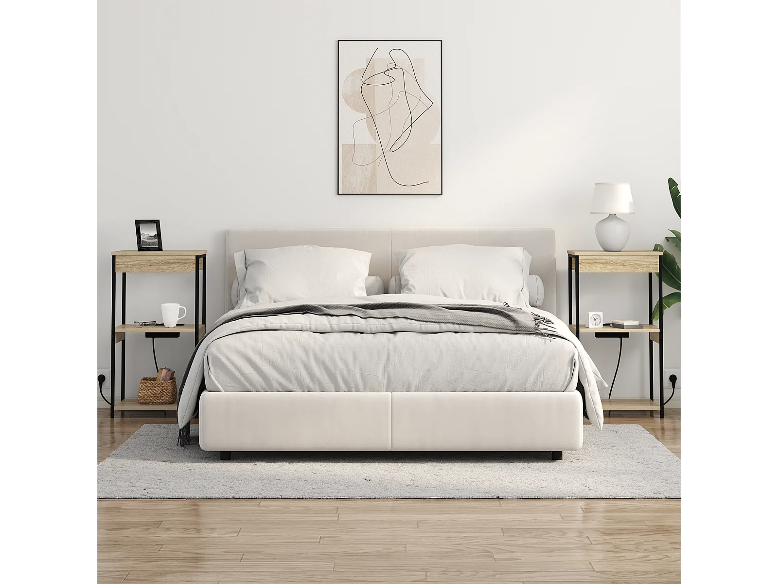 Table de nuit avec station de chargement Chêne sonoma