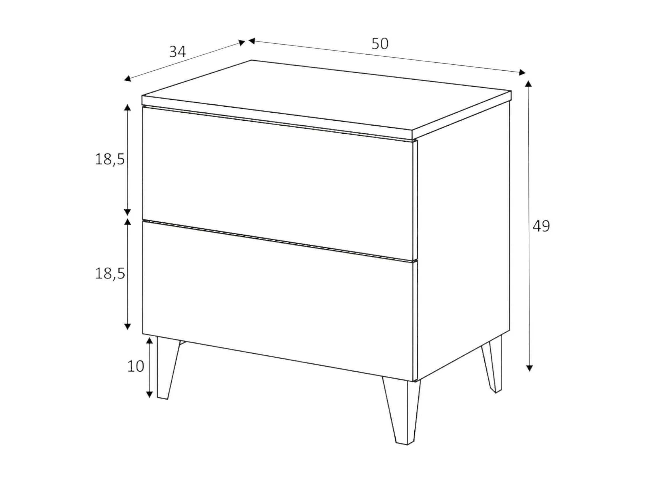 Table de chevet Dkosti, Table de chevet 2 tiroirs, Table de nuit, Commode basse pour chambre, 50x34h49 cm, Blanc brillant