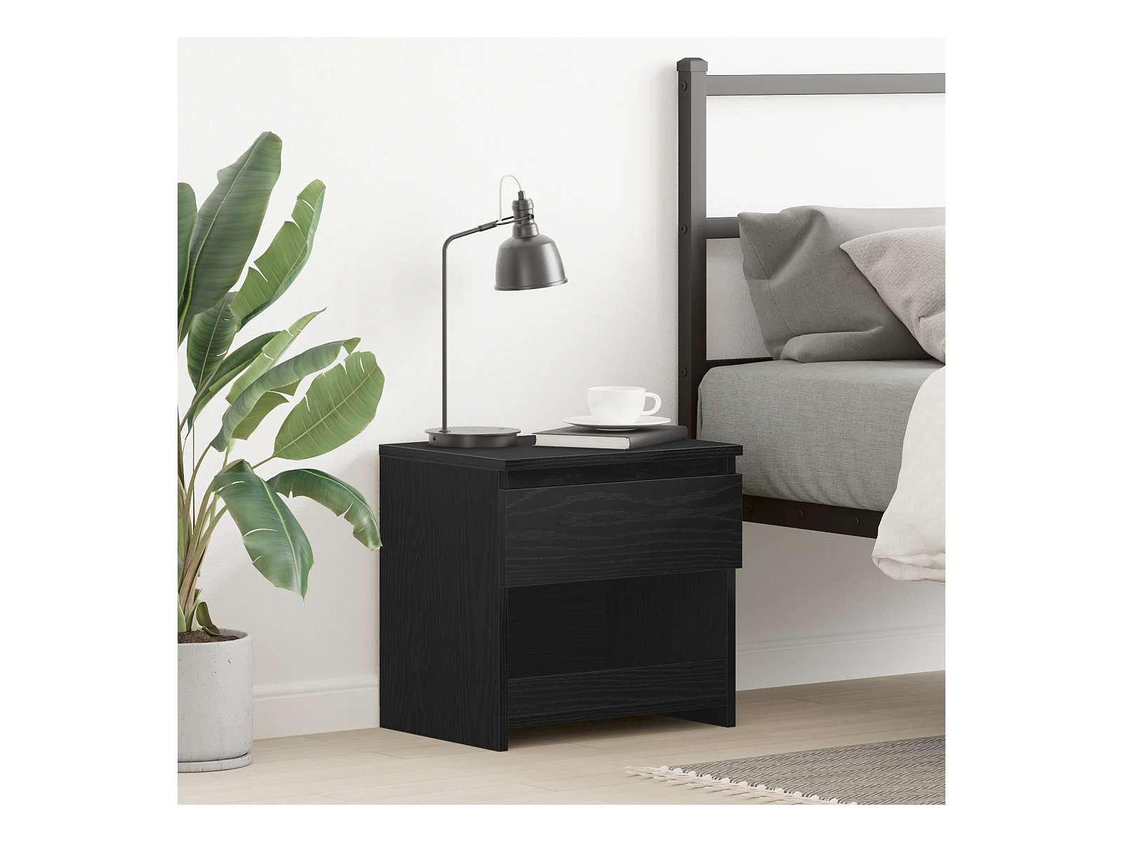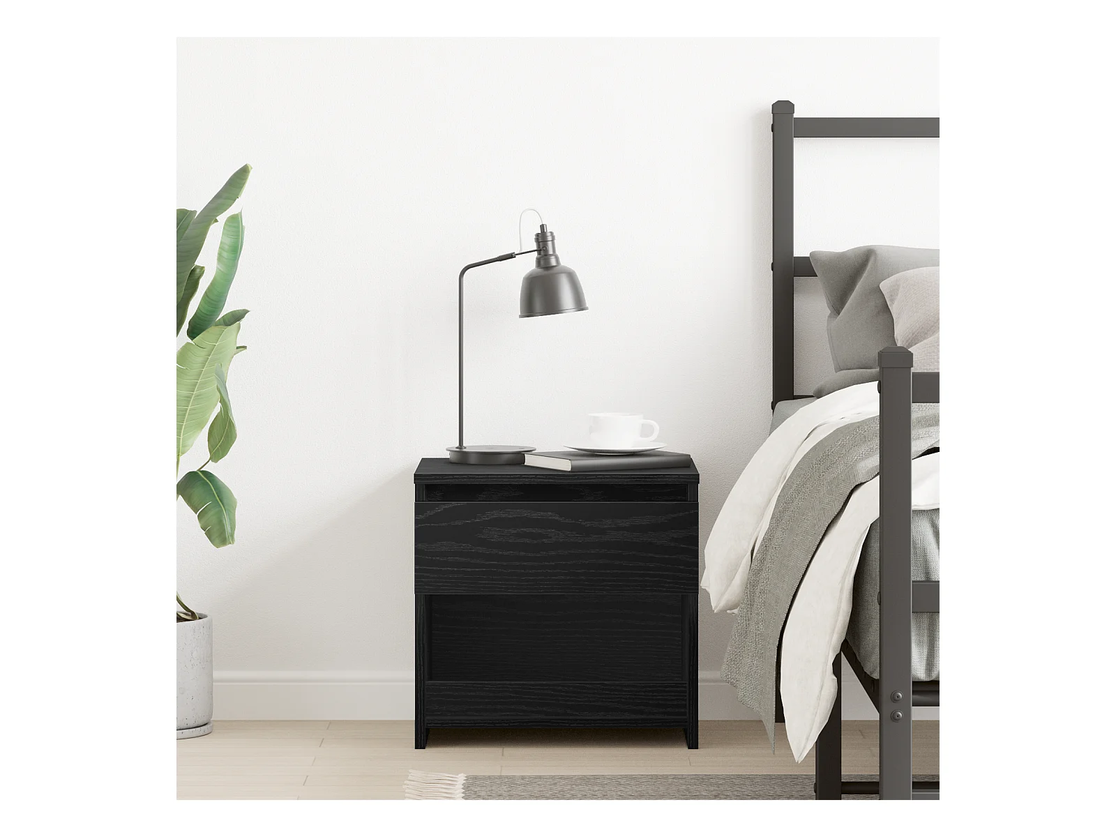 Table de nuit Noir Chêne 40x30x39 cm en bois d'ingénierie