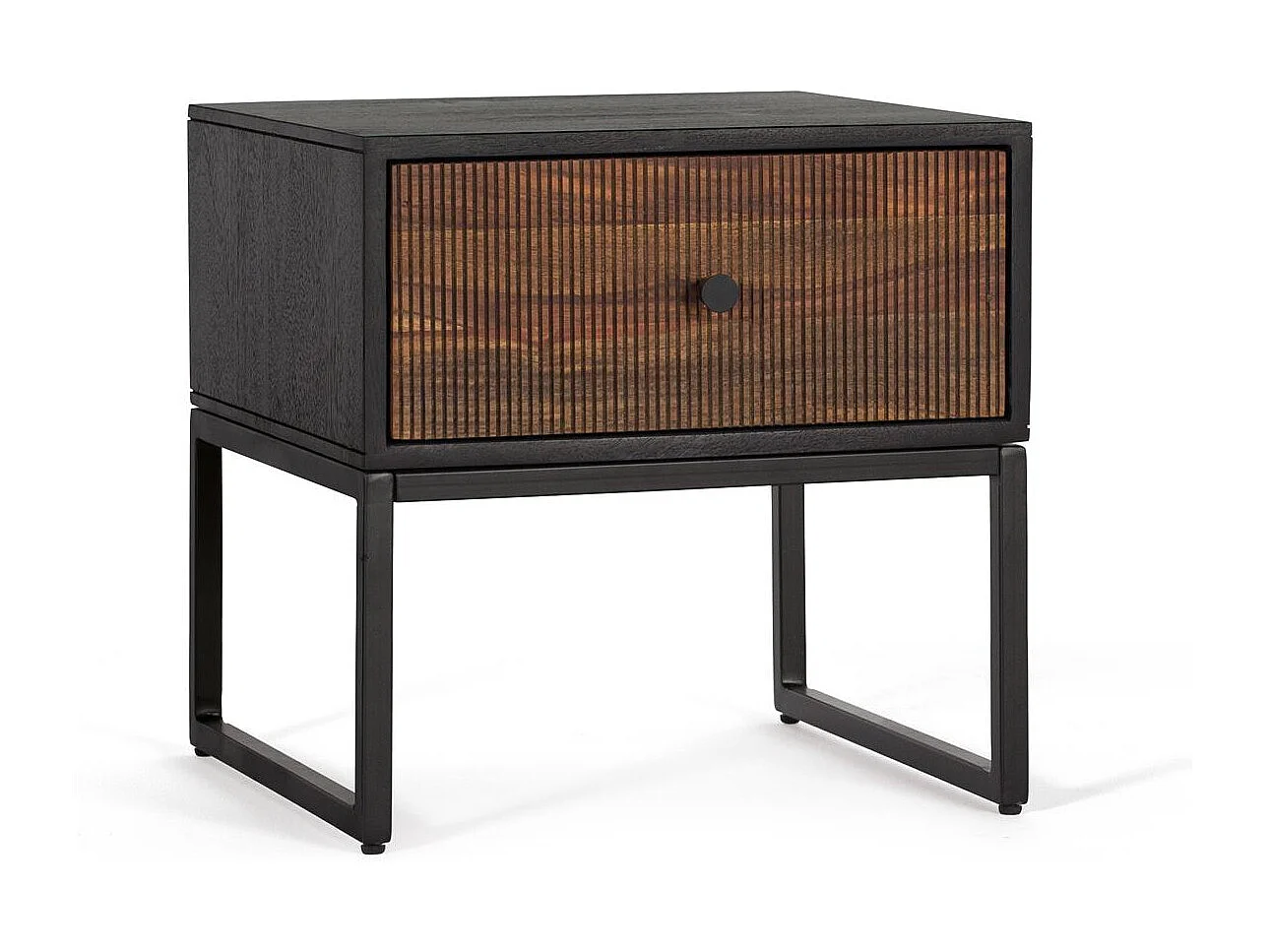 Table de chevet 1 tiroir bois clair et noir Eighty