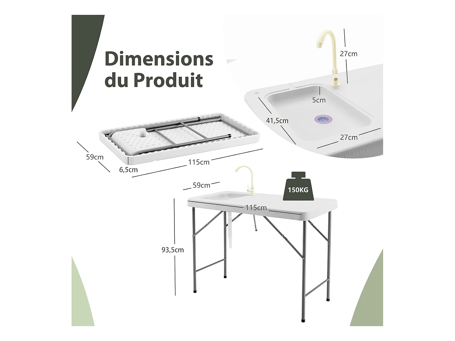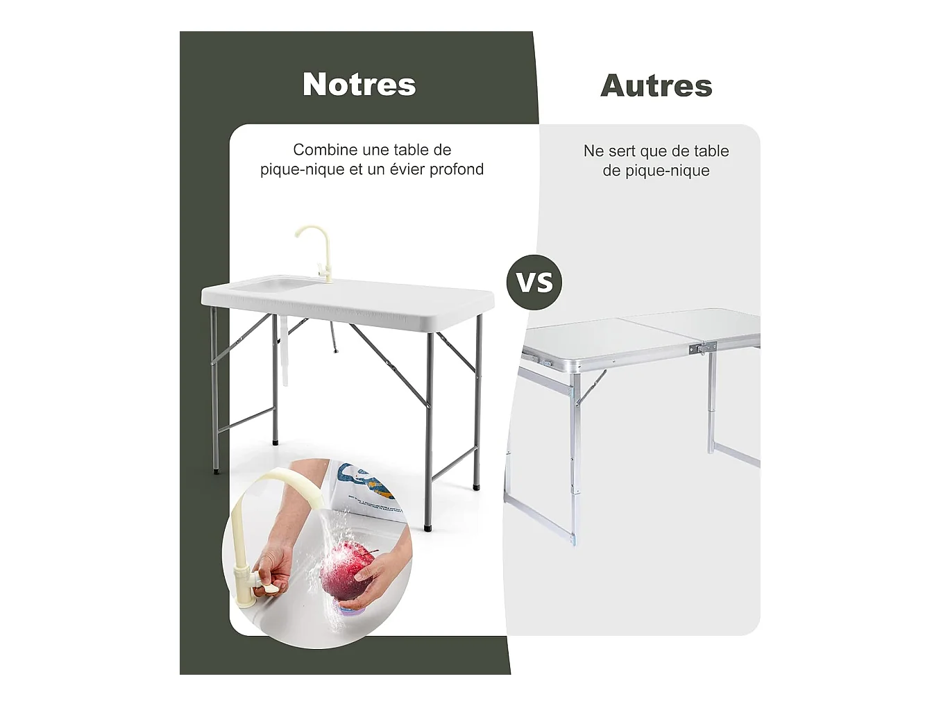 Table de Pêche avec Éviers, Table Pliante Portable pour Nettoyage de Poisson, Acier &HDPE, pour Jardin CamBoisg Pique-Nique