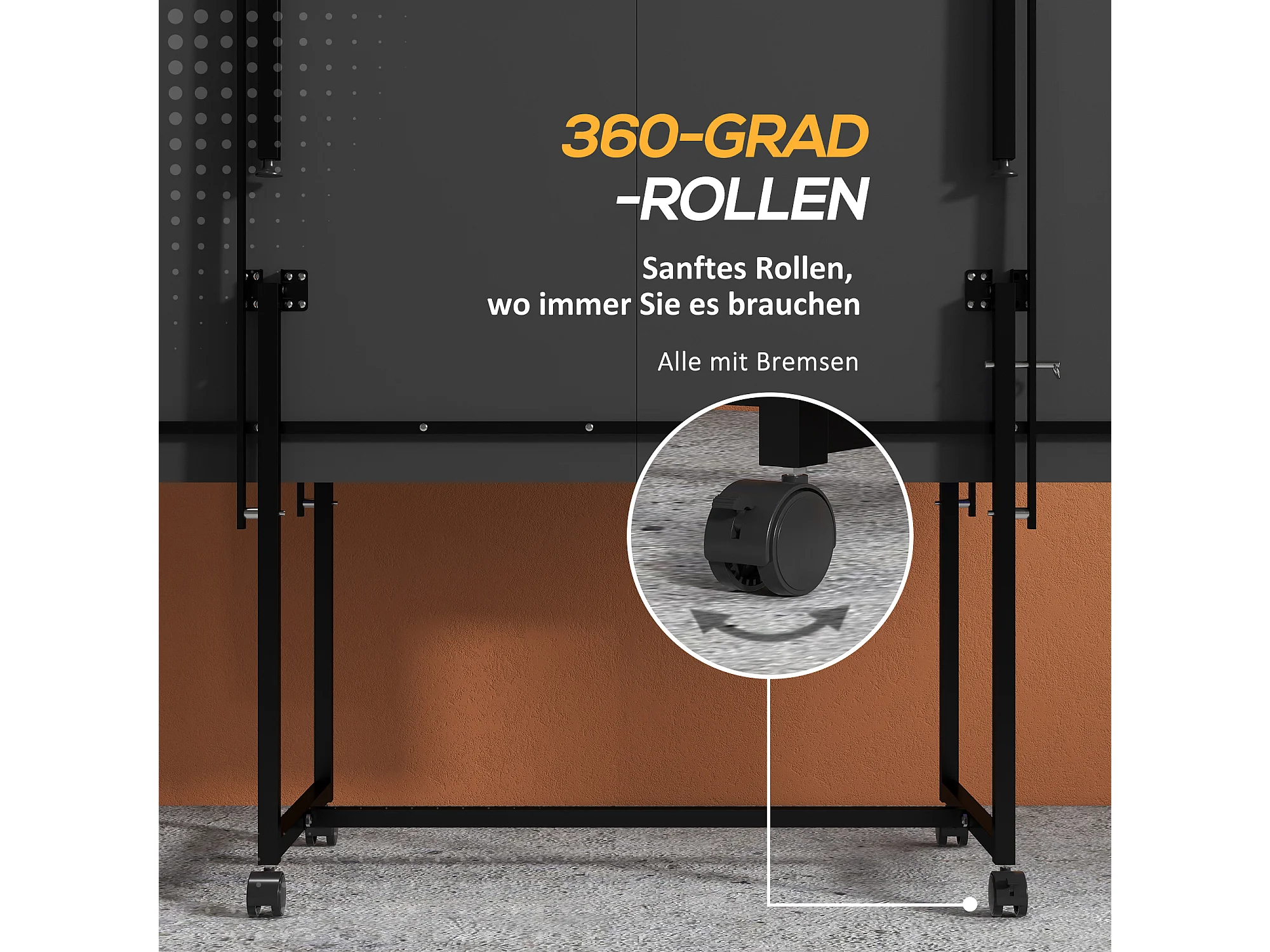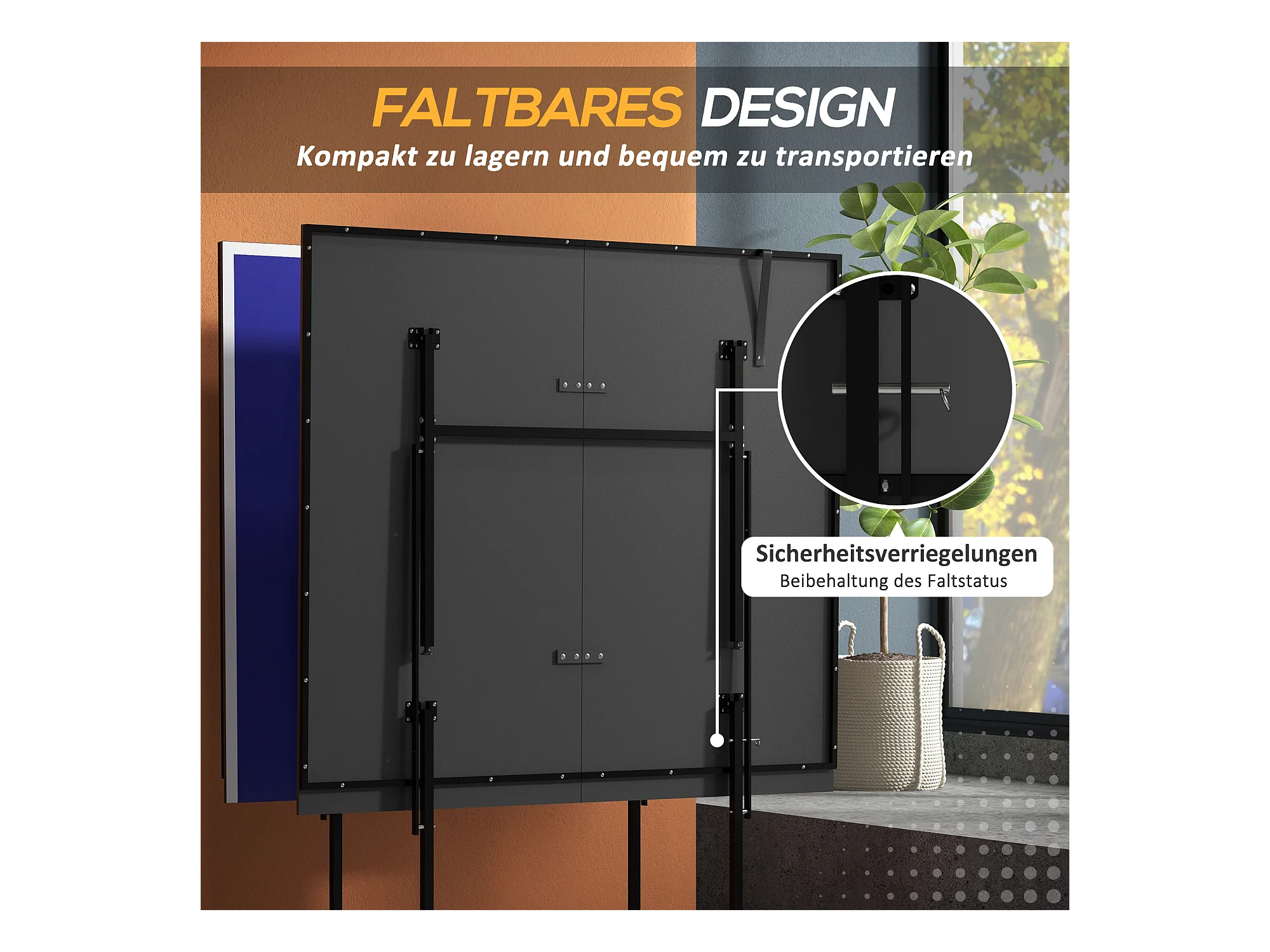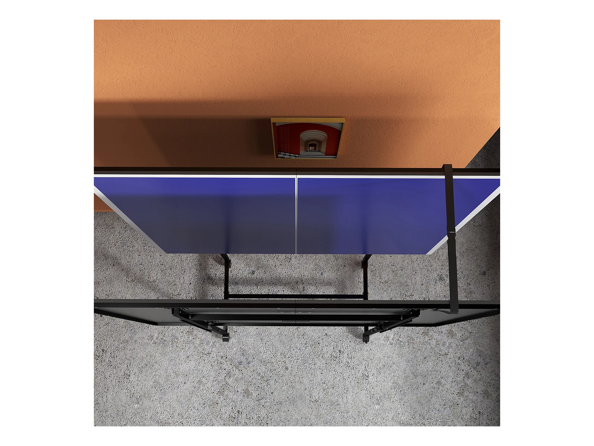 Table de ping-pong pliable en quart avec roulettes, MDF et acier, bleu, incl. 2 raquettes et 3 balles (274x152.5x75.5 cm)
