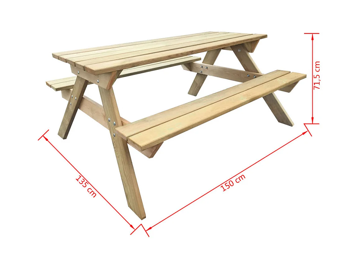 Table de pique-nique 150 x 135 x 71,5 cm Bois