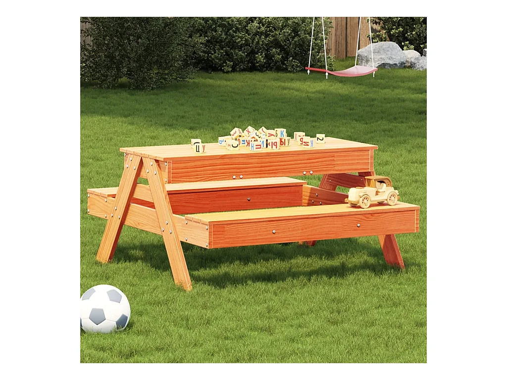 Table de pique-nique avec bac à sable pour enfants marron cire