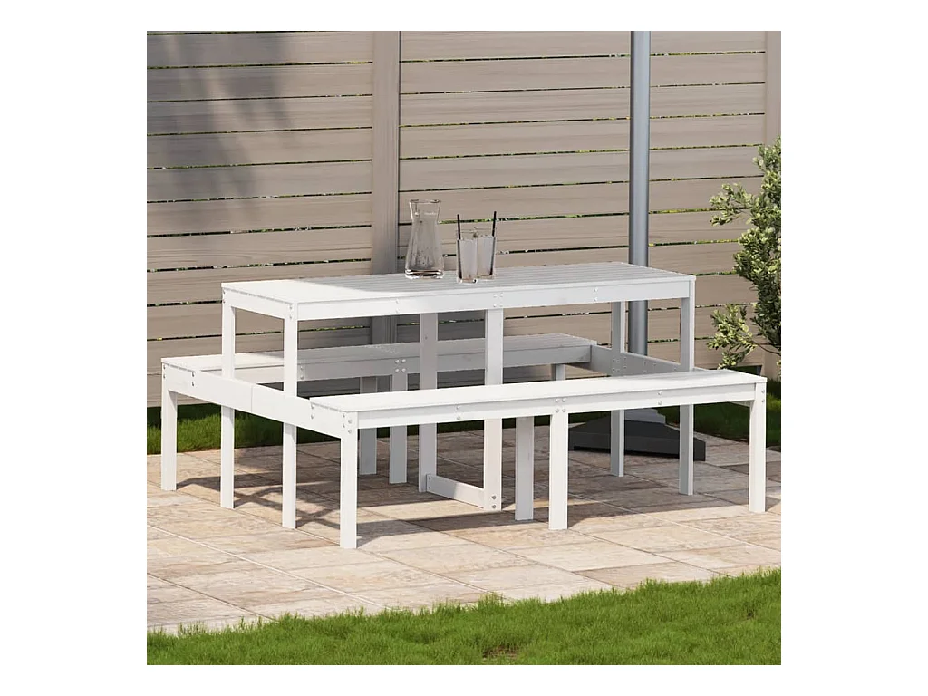 Table de pique-nique blanc 105x134x75 cm bois massif de pin FR755898