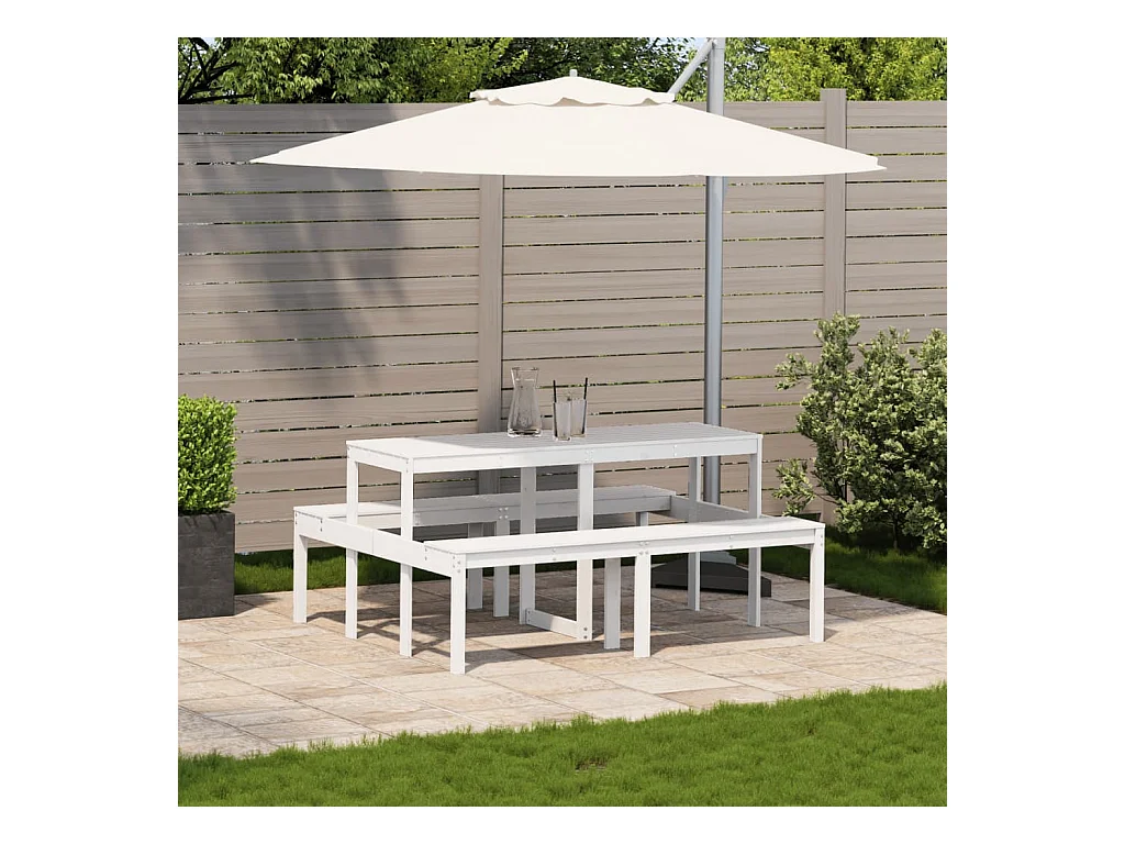 Table de pique-nique blanc 110x134x75 cm bois massif de pin FR775288