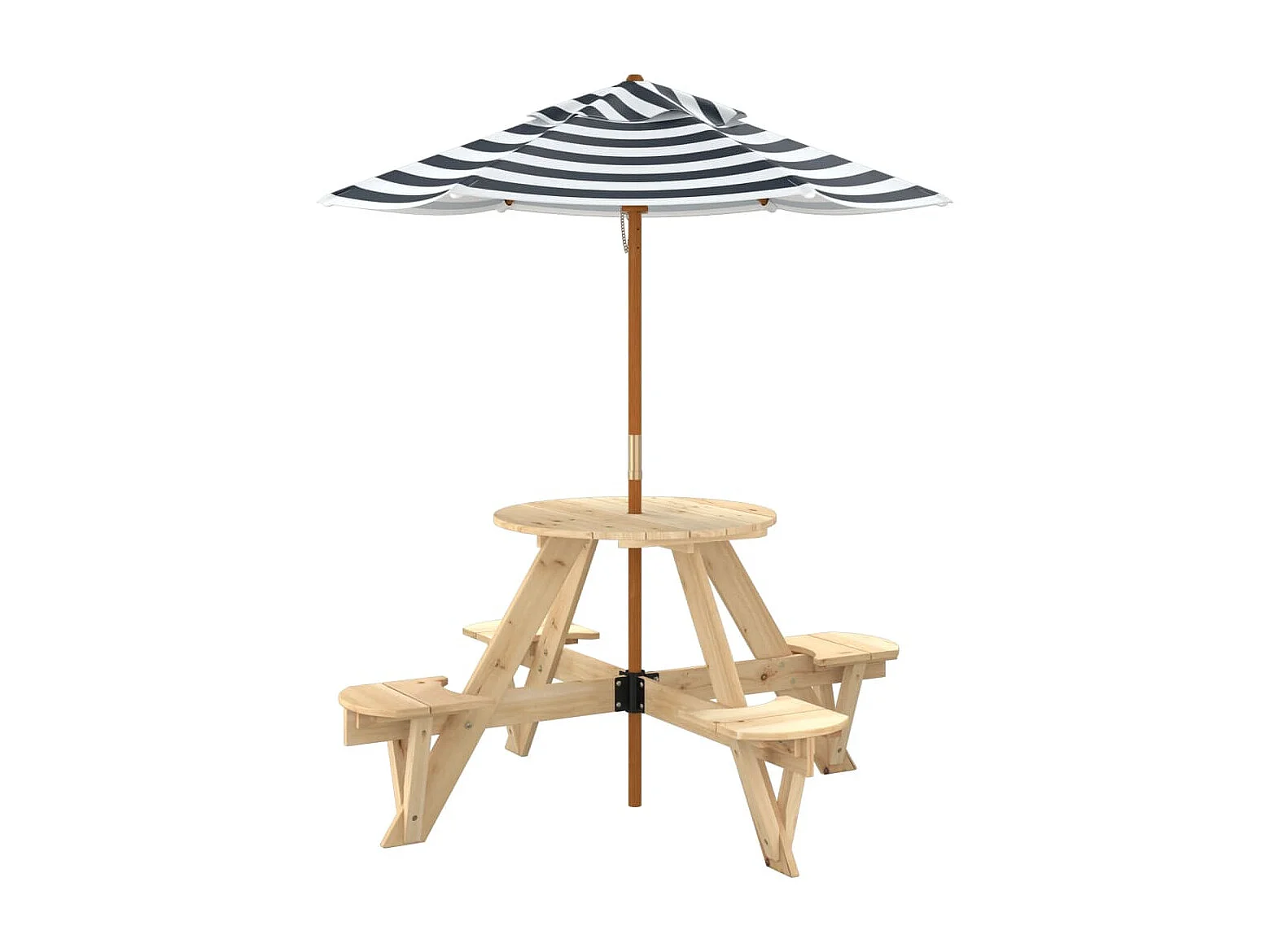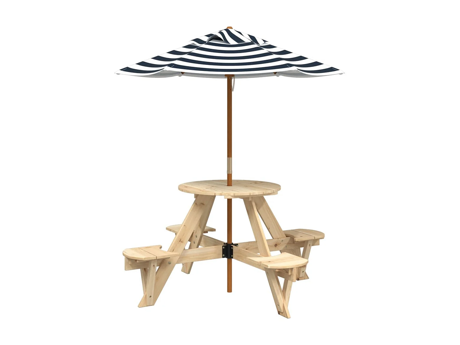 Table de pique-nique pour 4 enfants avec parasol rond sapin