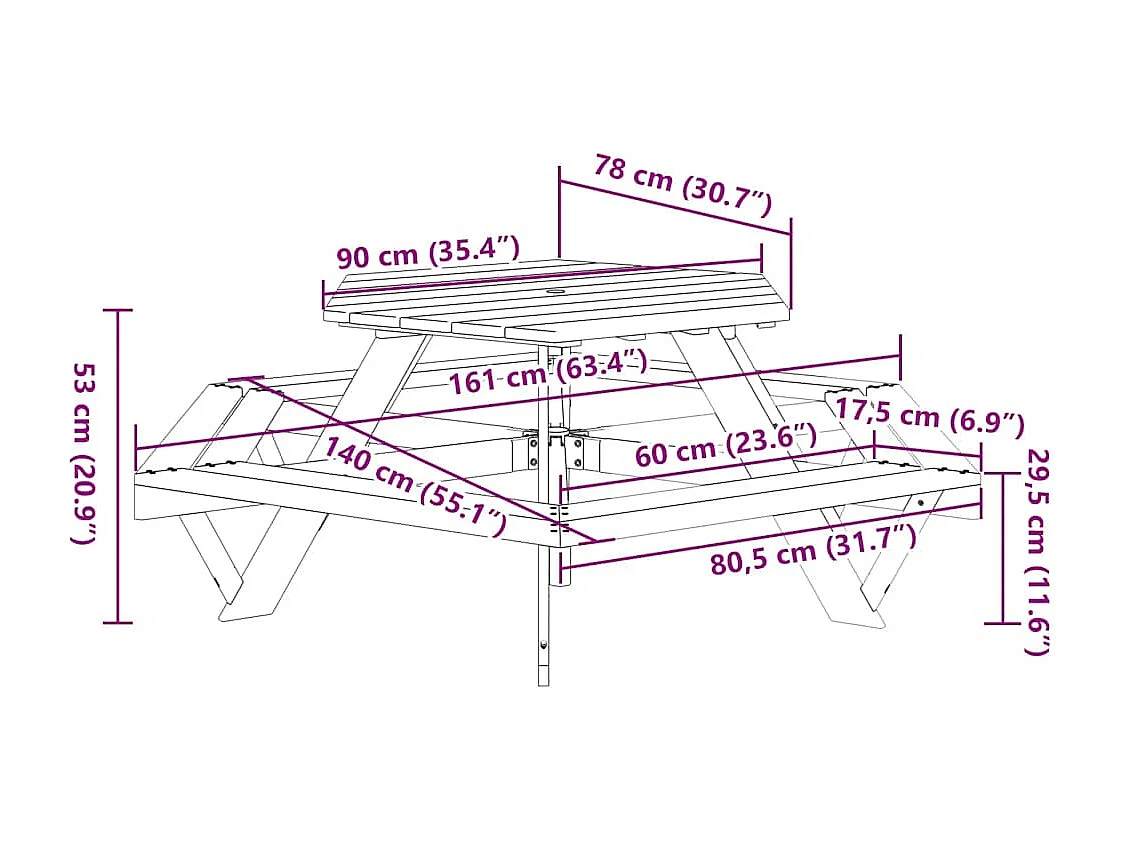 Table de pique-nique pour 6 enfants avec bancs hexagonal sapin