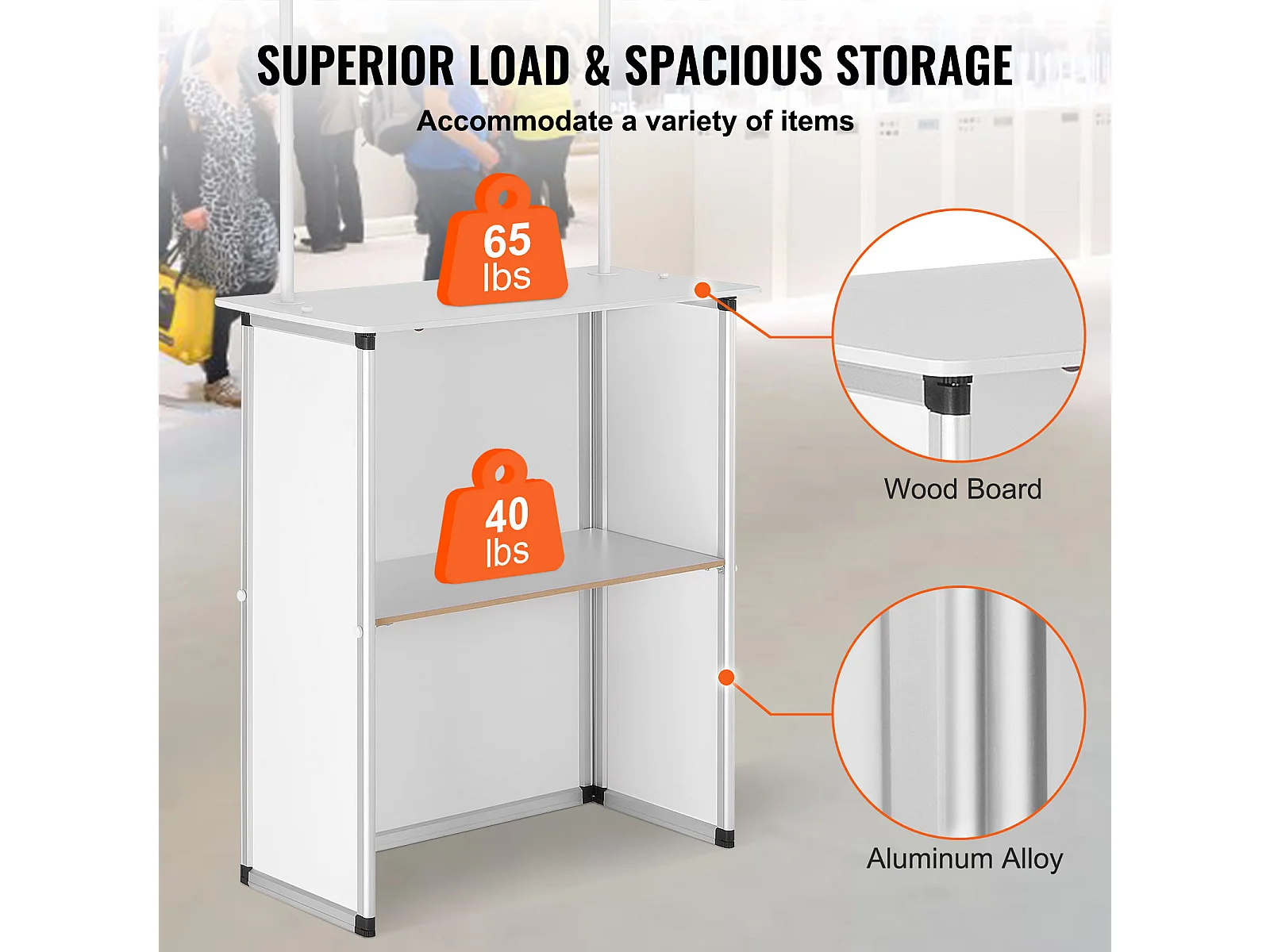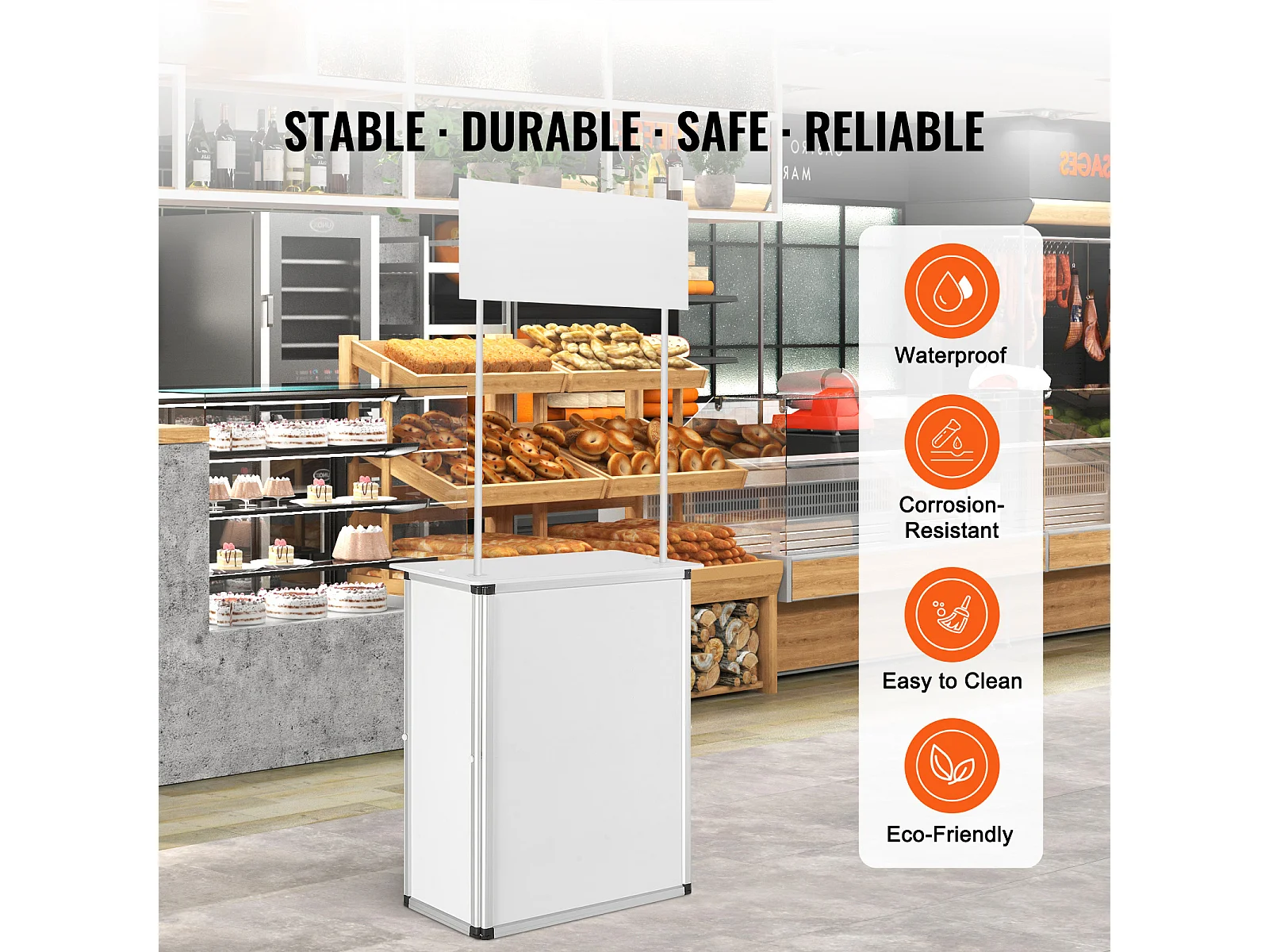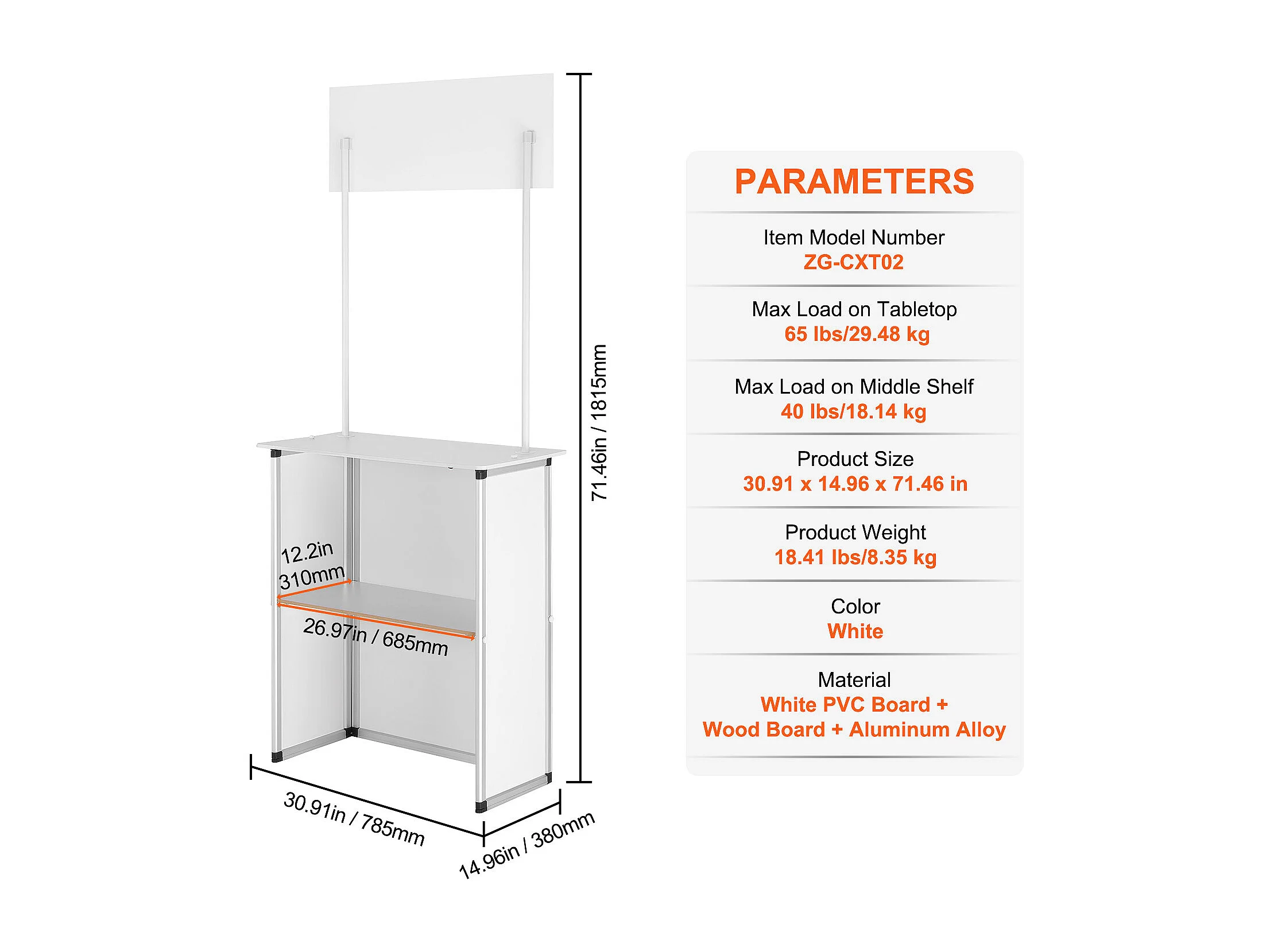 Table de Présentation SucceBuy, pour Salon Professionnel 78.5CM x 38CM x 181.5CM, Comptoir d'Exposition Pliable avec Mur, Table de Bar de Promotion au Détail