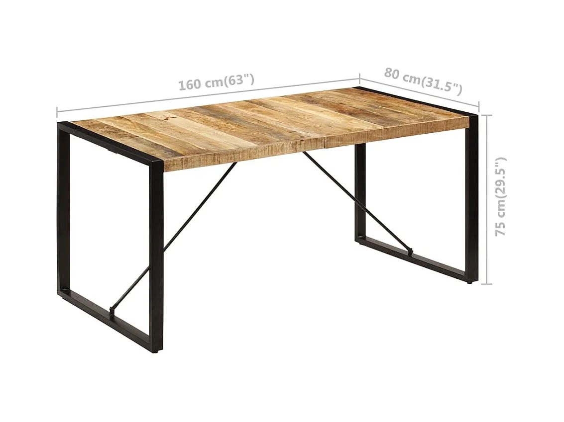 Table à manger 160x80x75 cm Bois de manguier massif brut