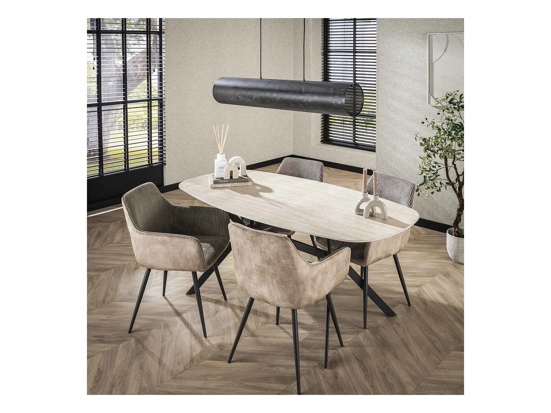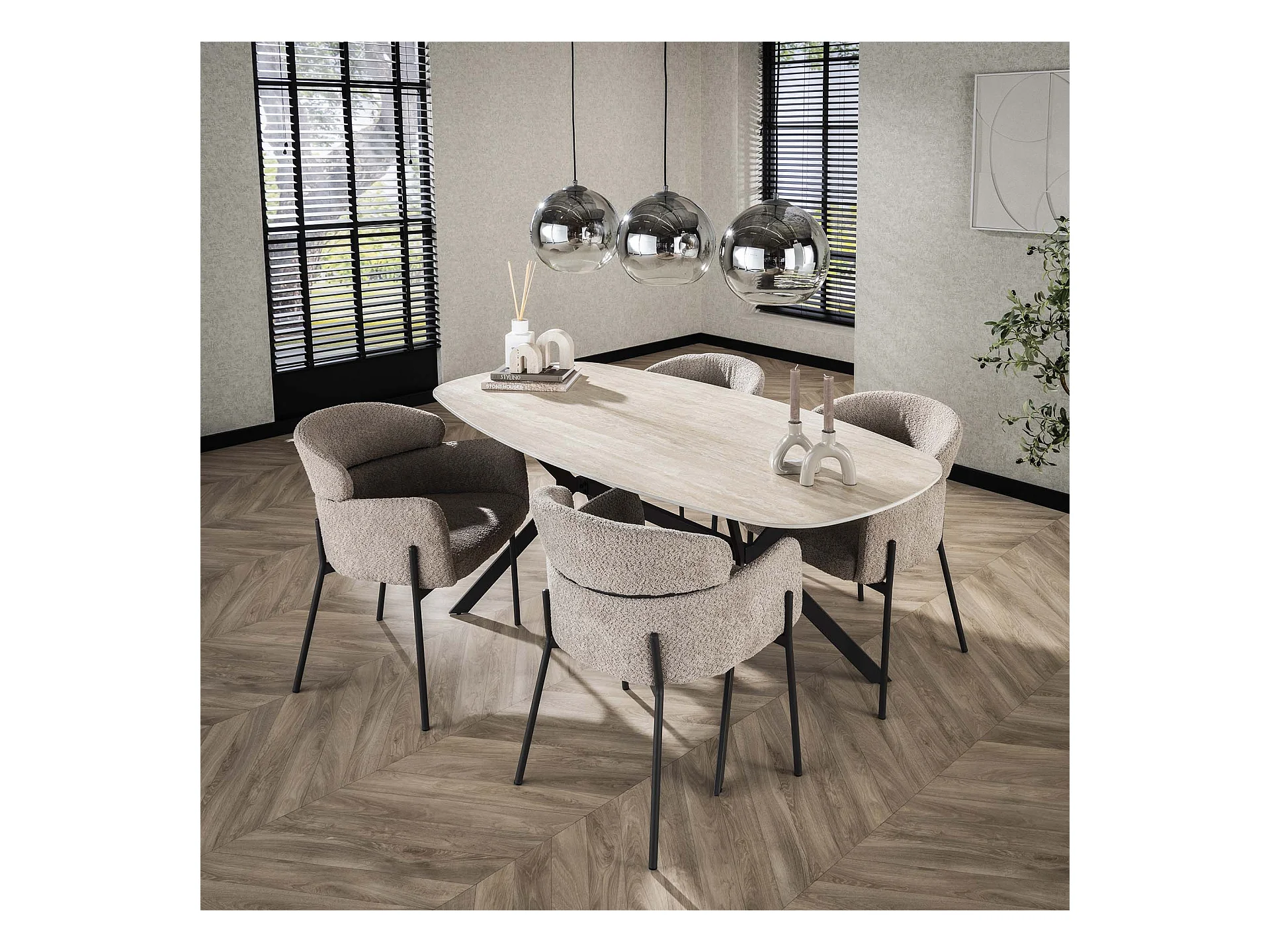 Table à manger 180 cm - Ovale - Céramique Noire - 4 Personnes