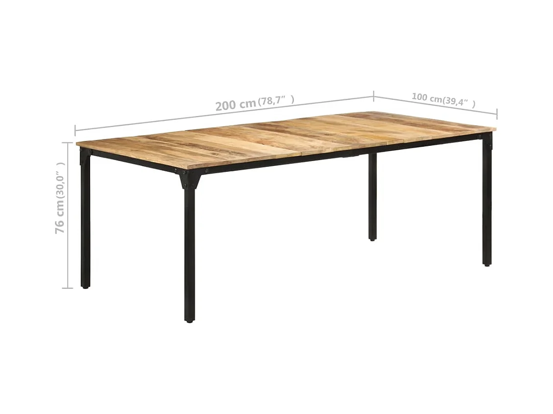 Table à manger 200x100x75 cm Bois de manguier massif brut