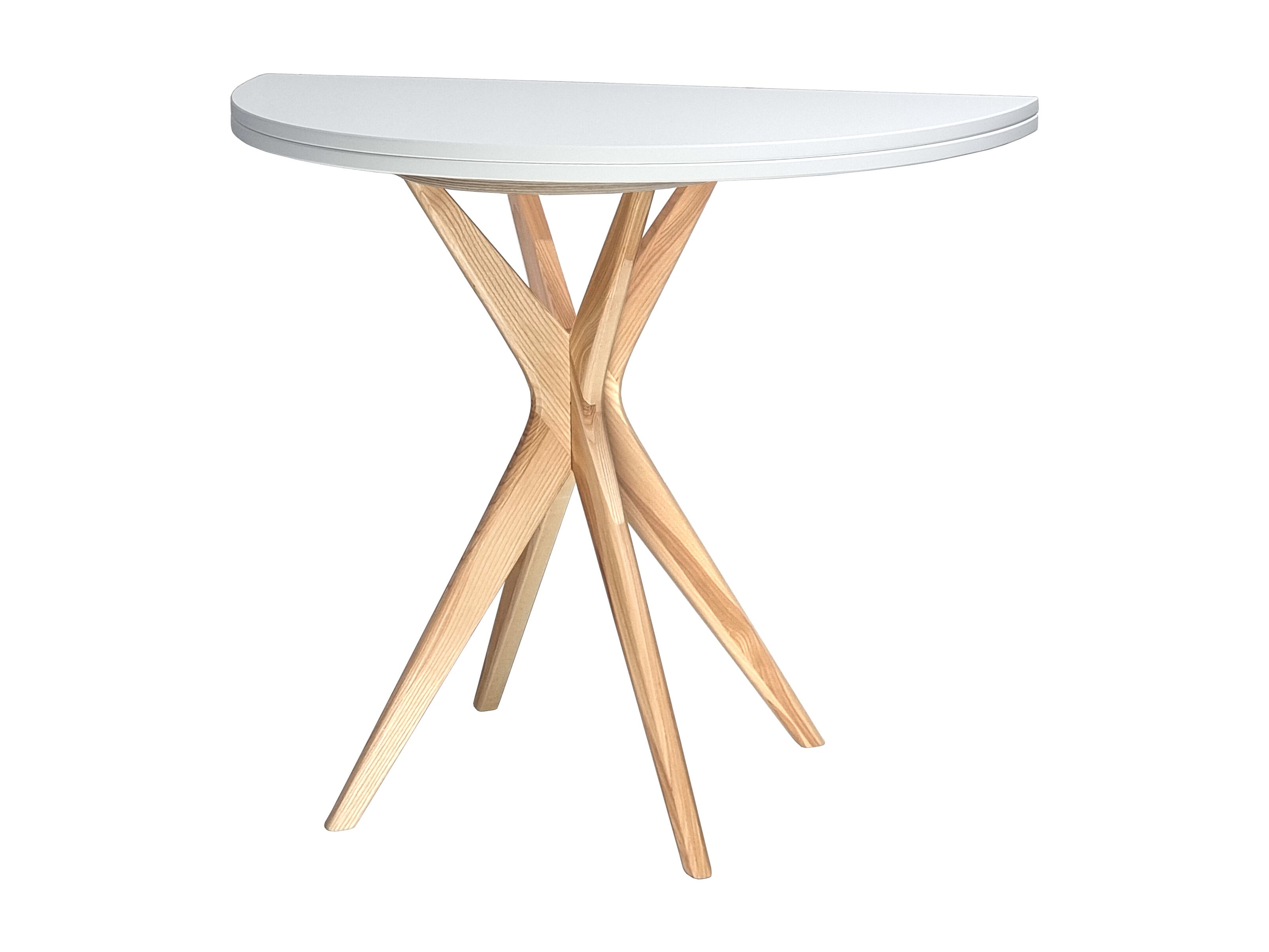 Table de salle à manger demi-ronde extensible 90 cm Jubi frêne