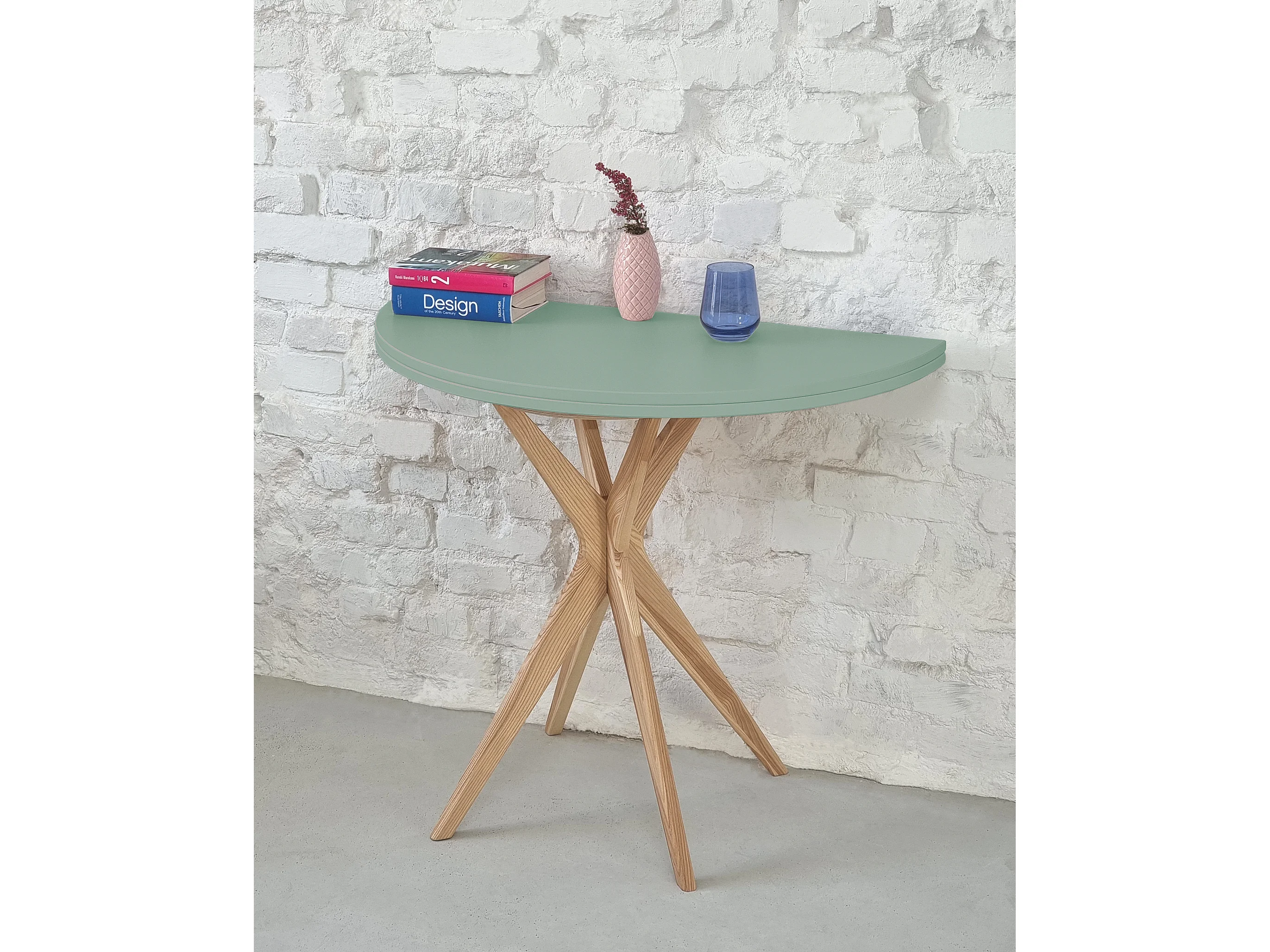 Table de salle à manger demi-ronde extensible 90 cm Jubi Rose Poudré