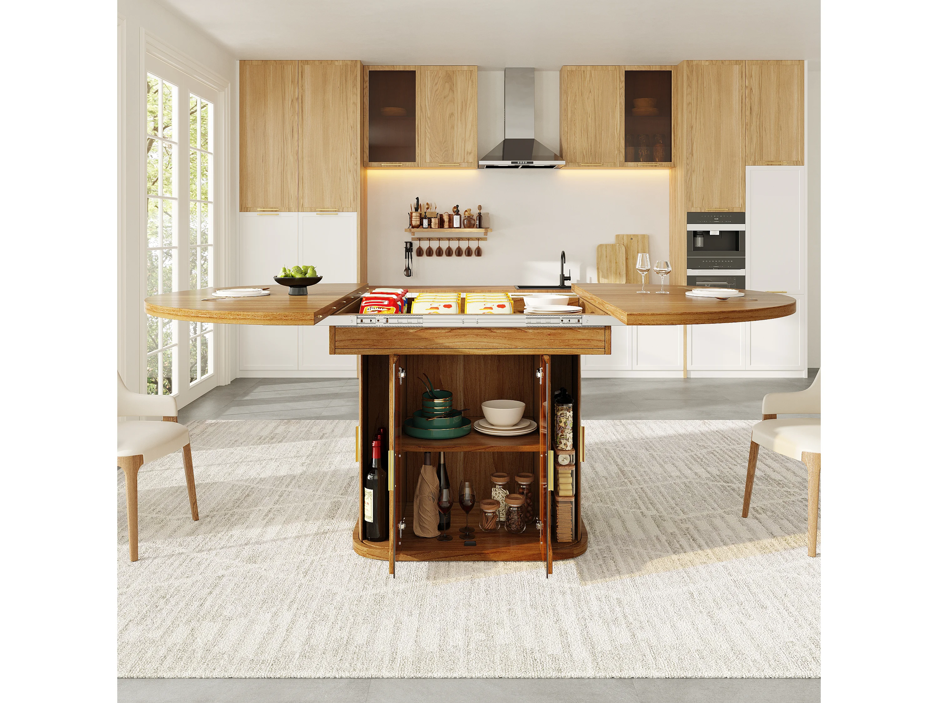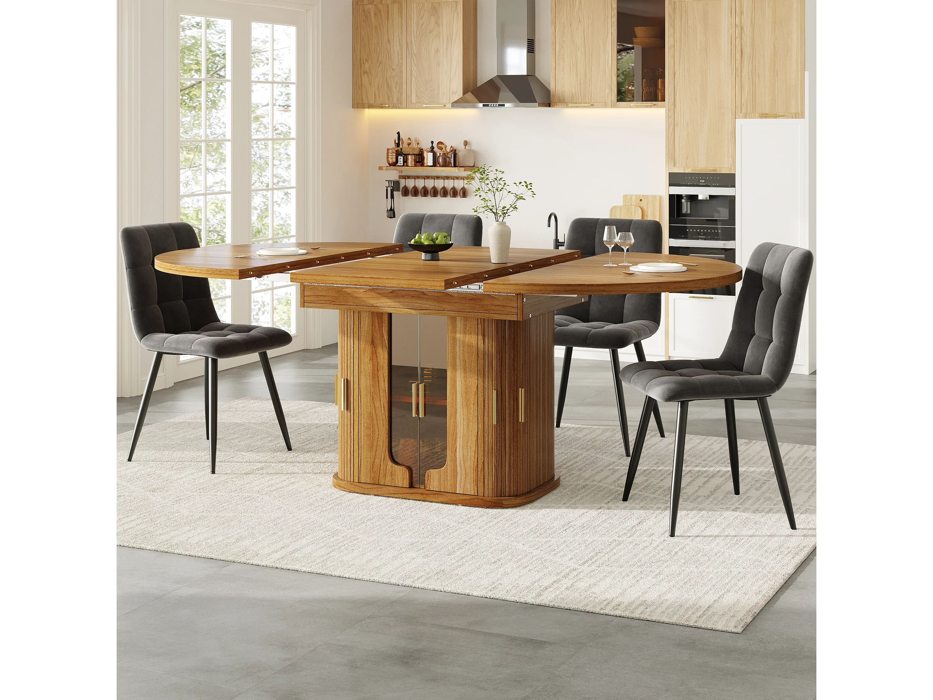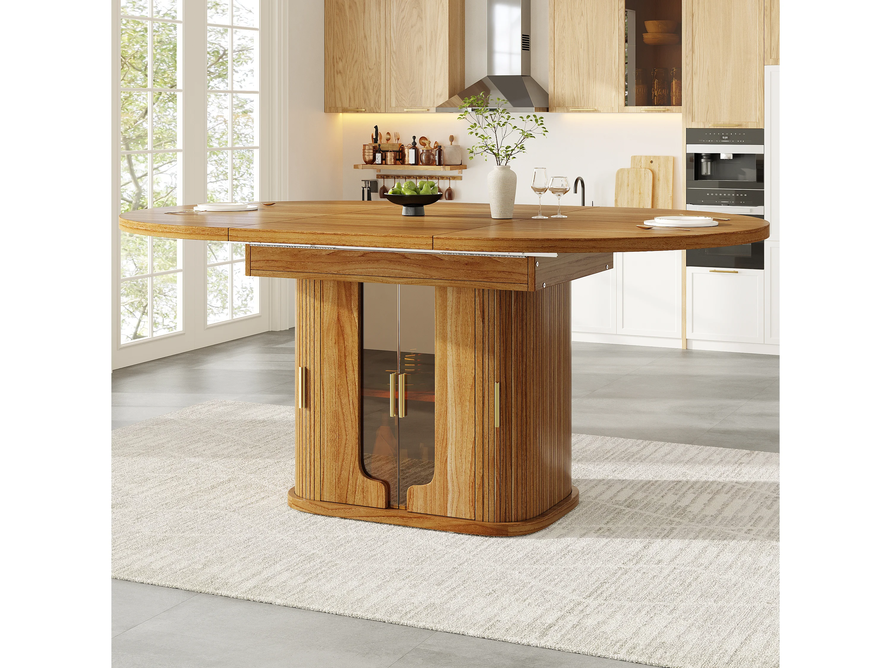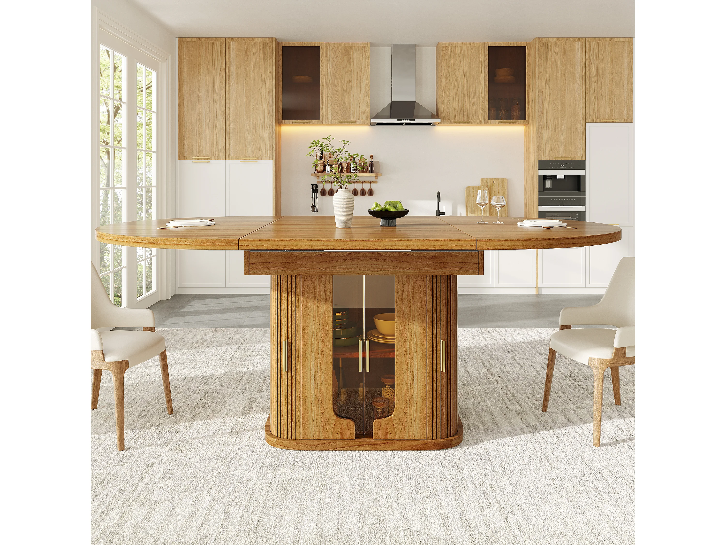 Table de salle à manger extensible 6 places - 118/158 x 118 x 77 cm - avec 3 portes + étagères - MDF - naturel
