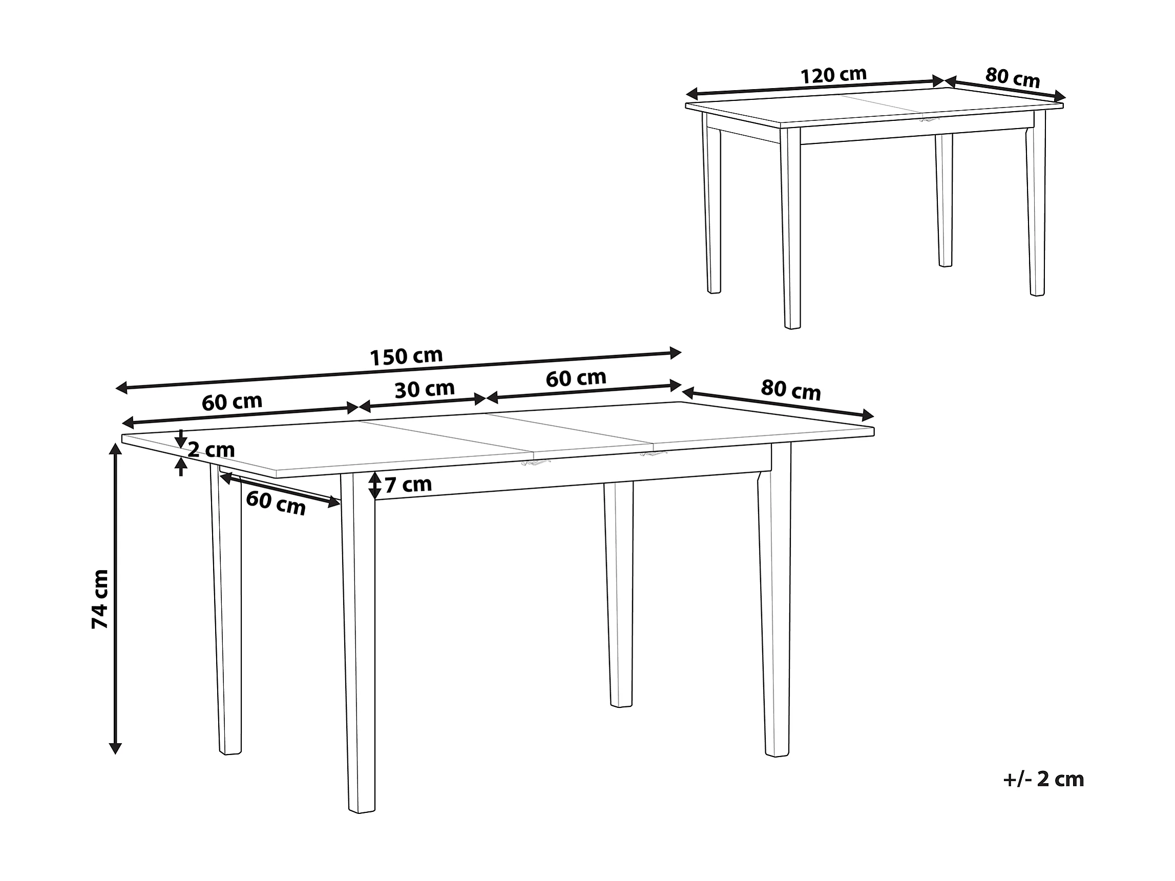 Table de salle à manger extensible HOUSTON Marron/blanc 120/150 cm 80 cm Bois
