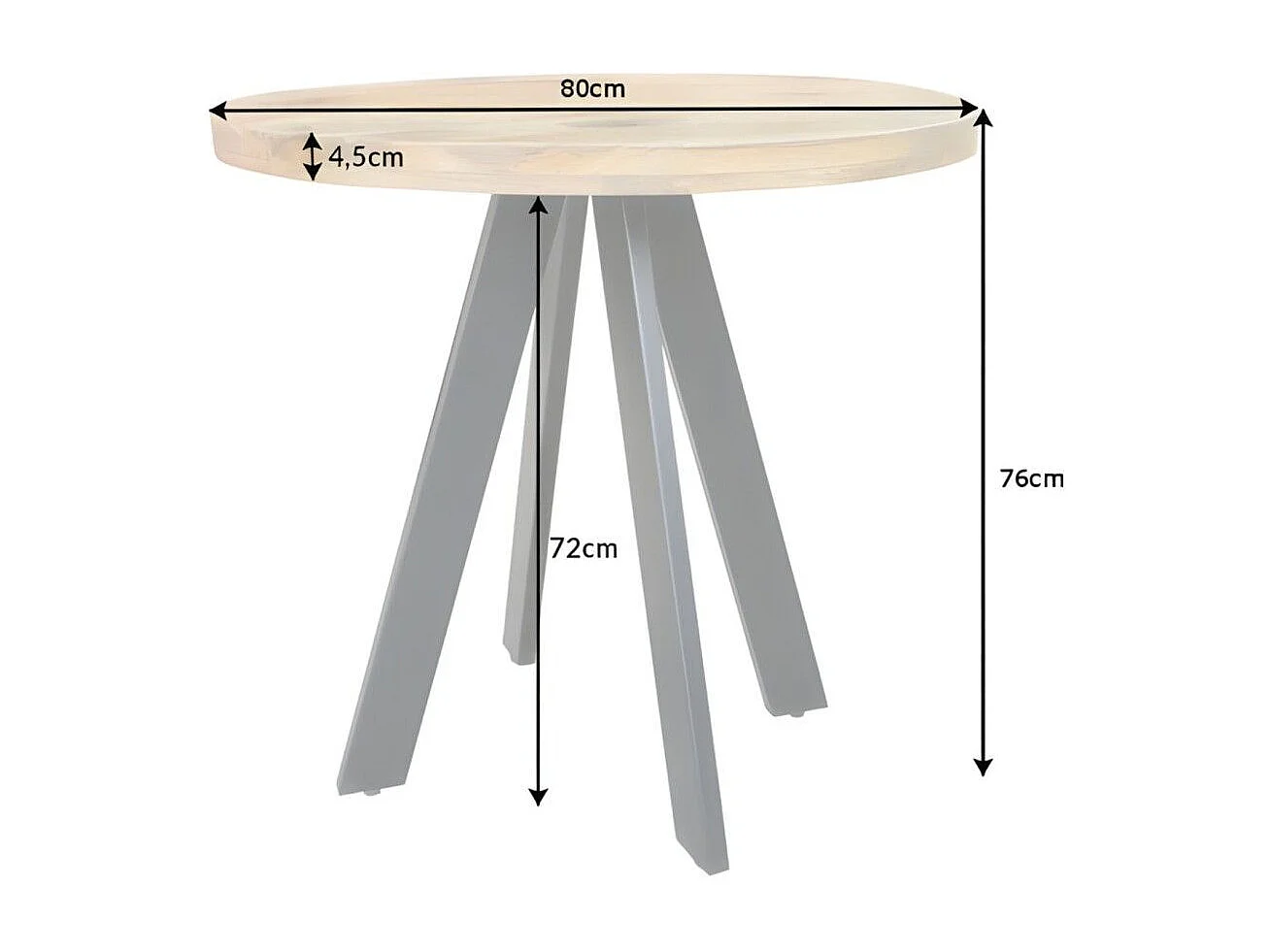 Table de salle à manger LODEN 80 cm – Plateau rond en bois massif de manguier et structure en métal noir