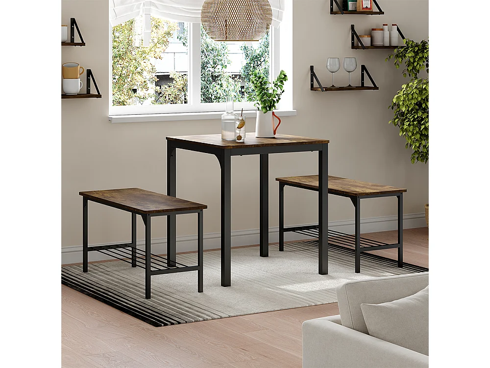 Table de salle à manger noir/chêne rustique 70x70x75 fyrk