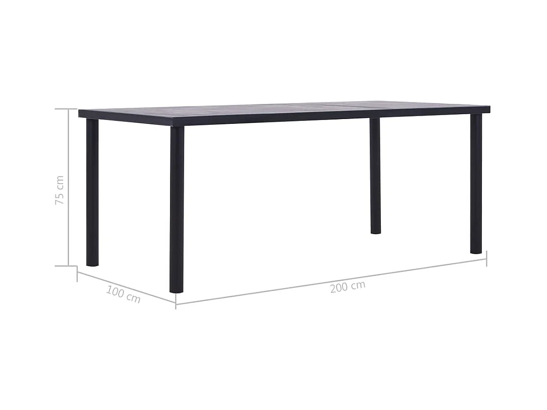 Table de salle à manger Noir et gris béton 200x100x75 cm MDF