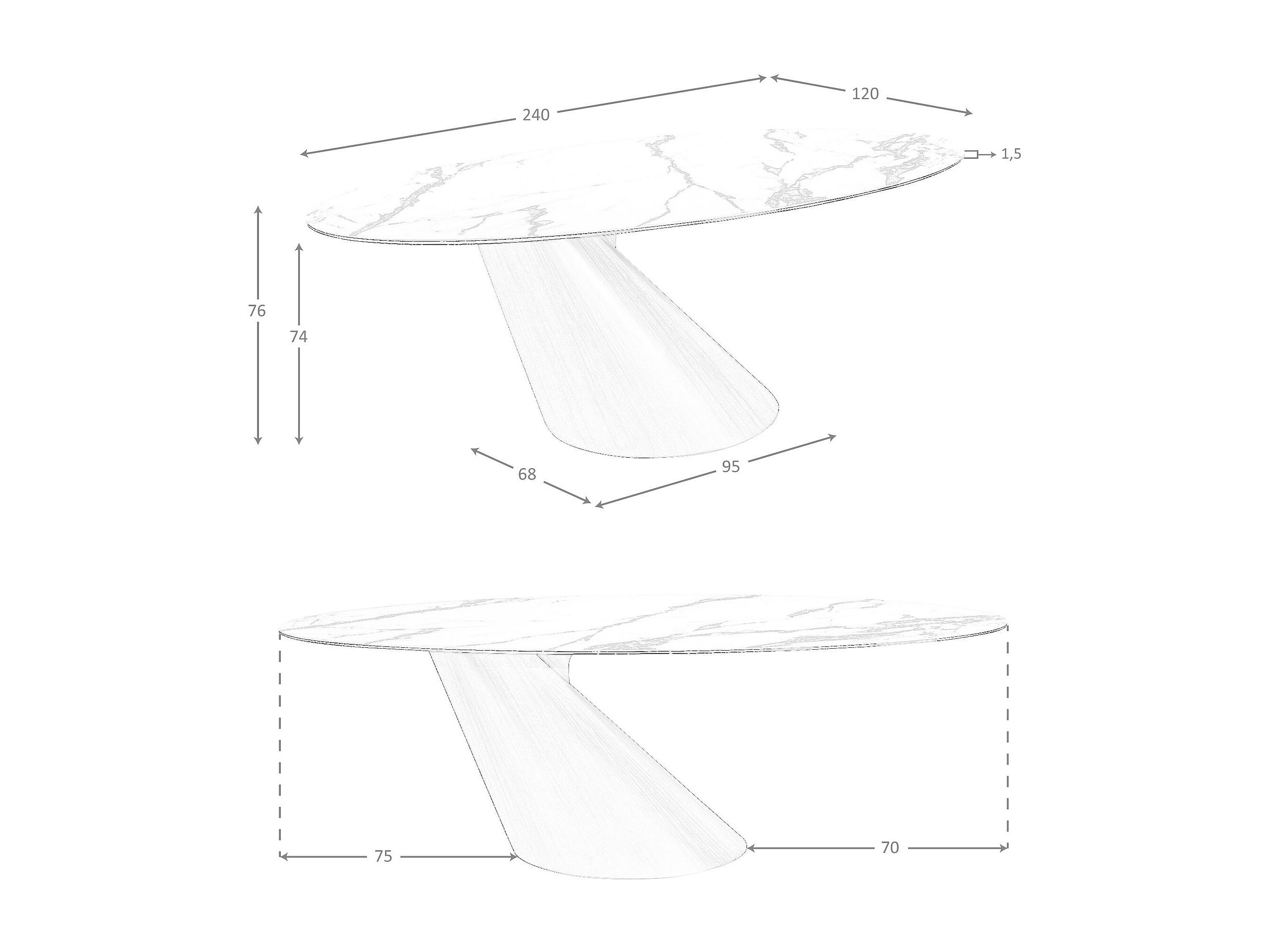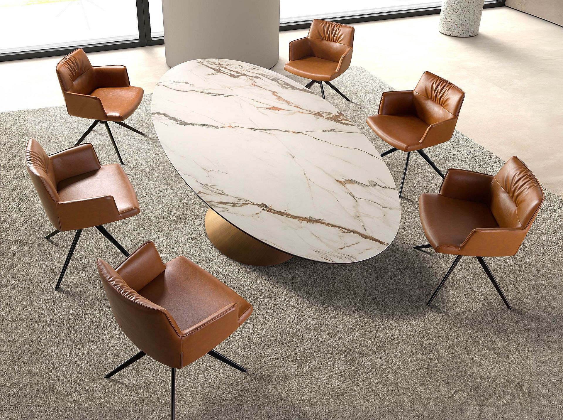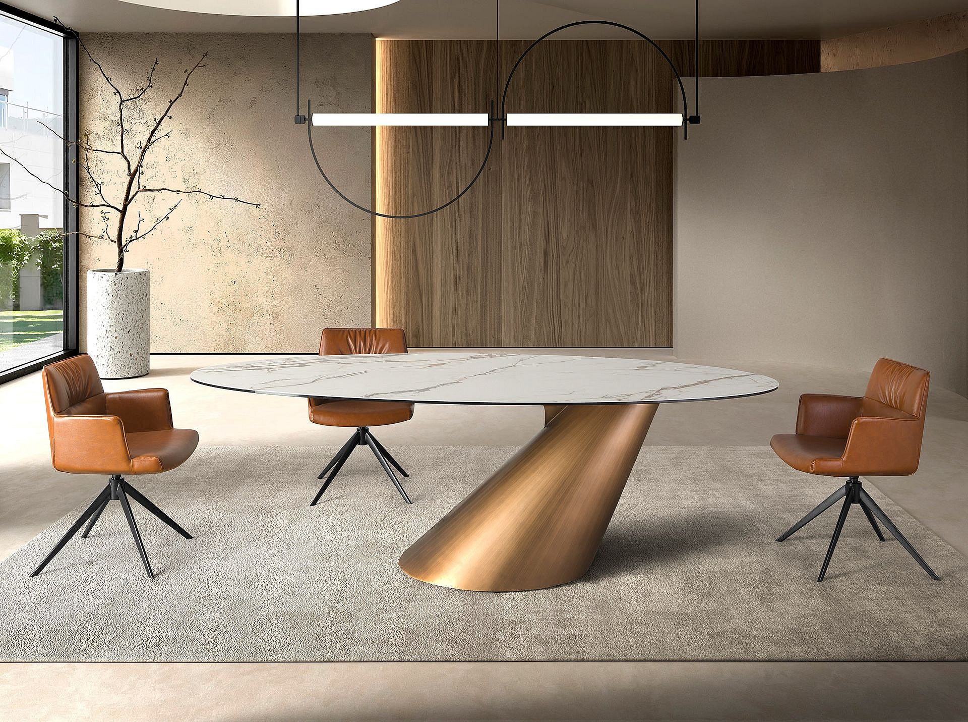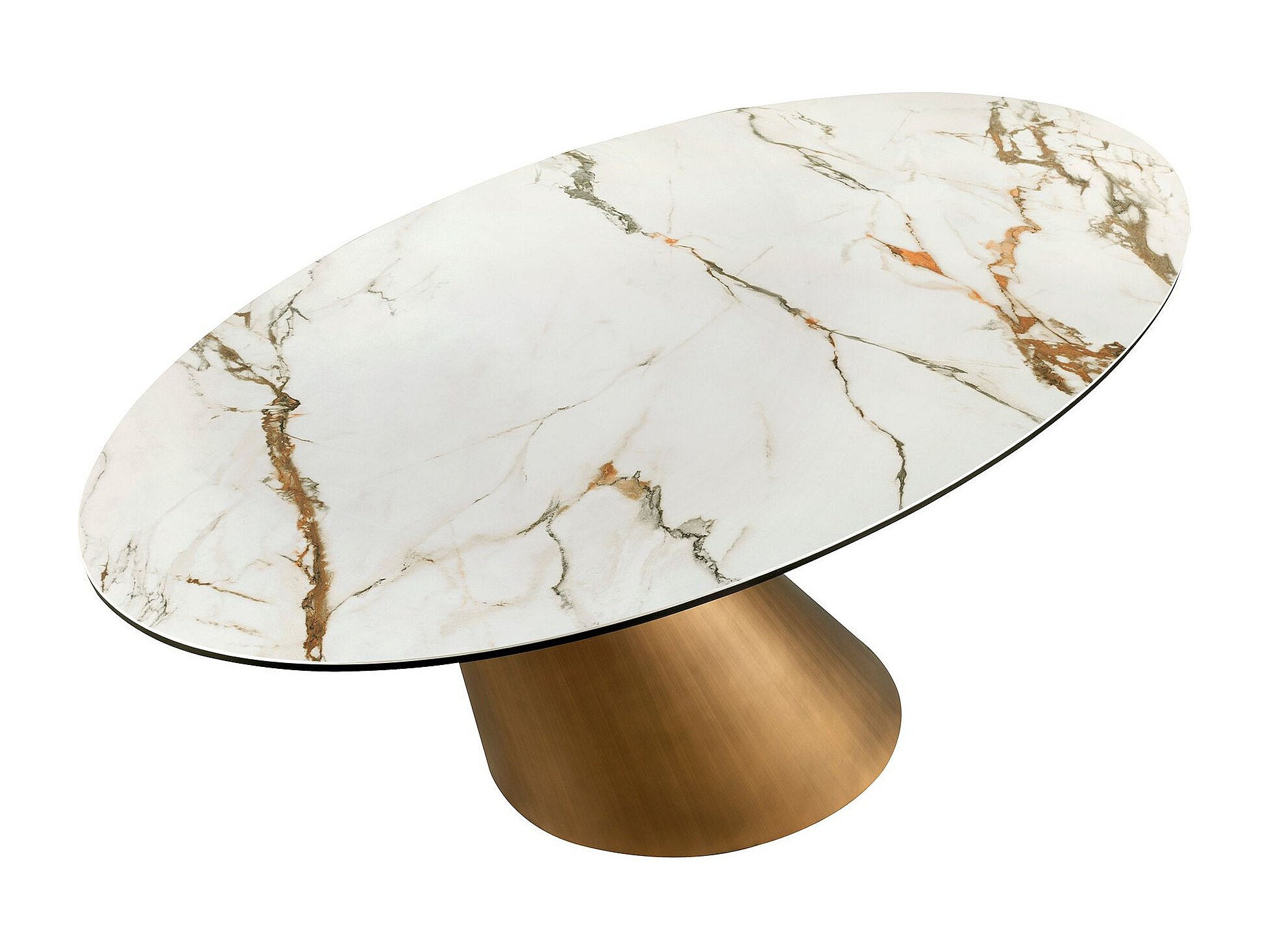 Table de salle à manger ovale en marbre de porcelaine et tonneau en acier couleur bronze 1160 ANGEL CERDA