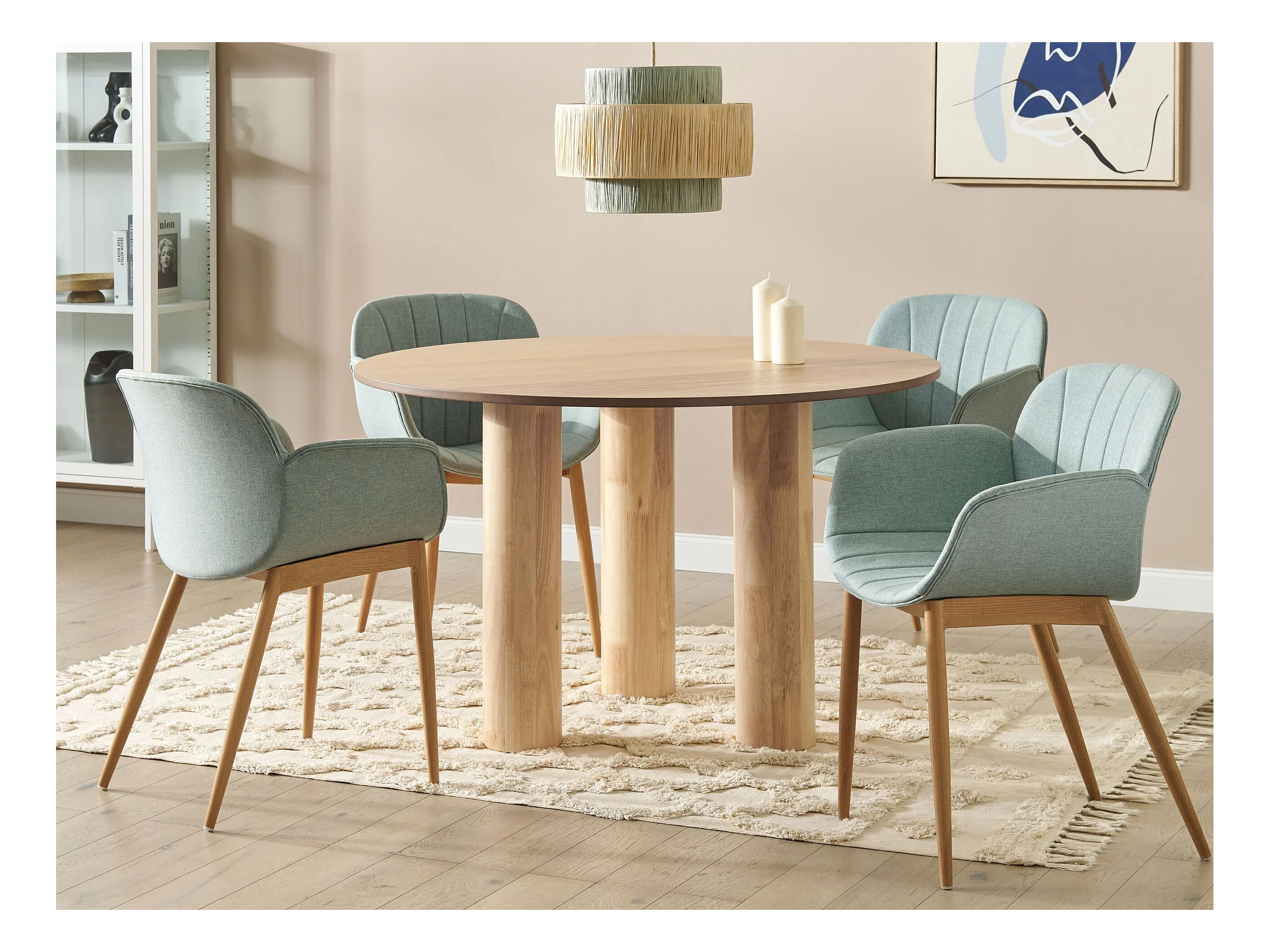 Table à manger ronde 90 cm Jubi frêne teinté chêne