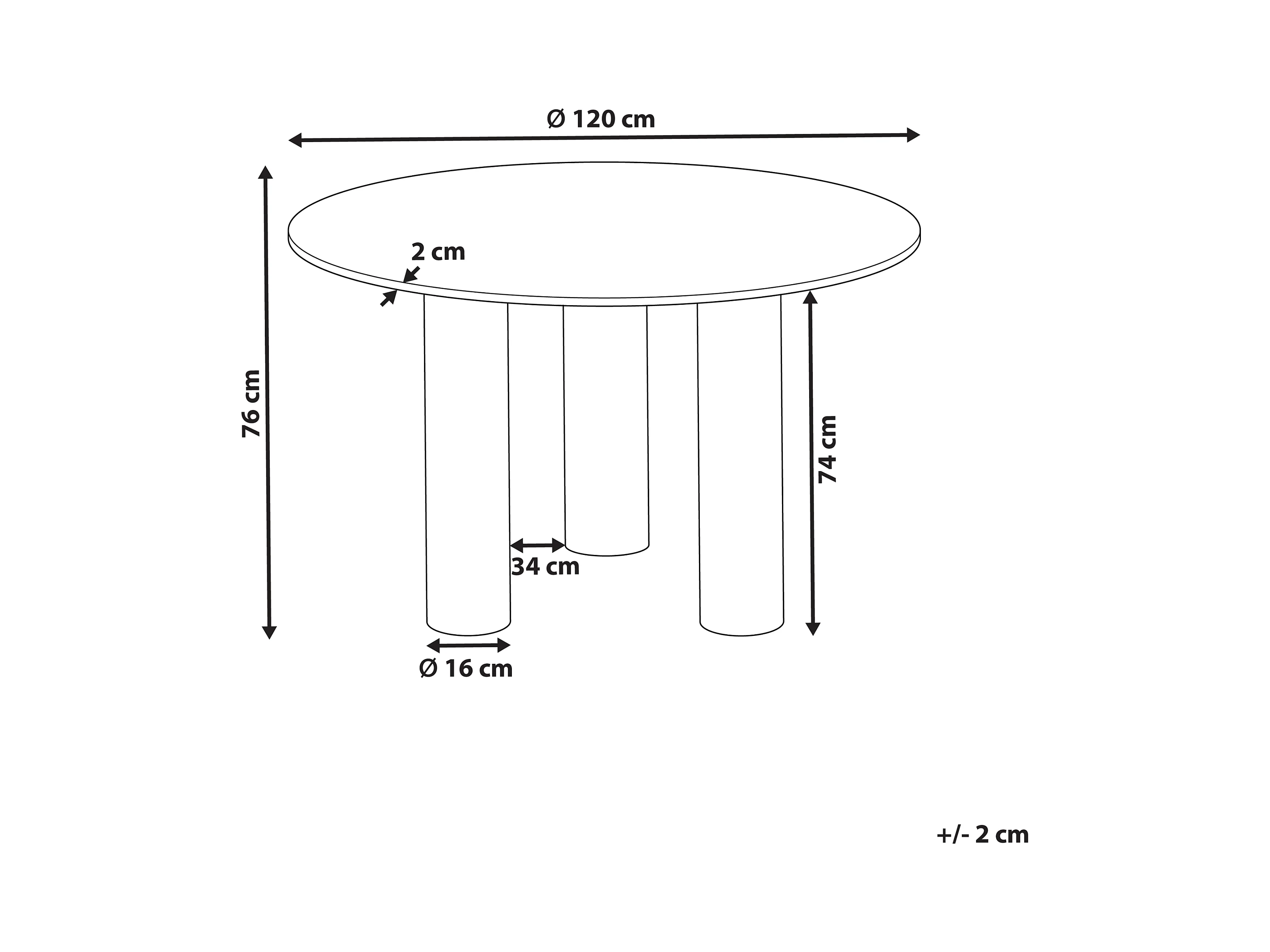 Table ronde pour 4 personnes 120x77 cm