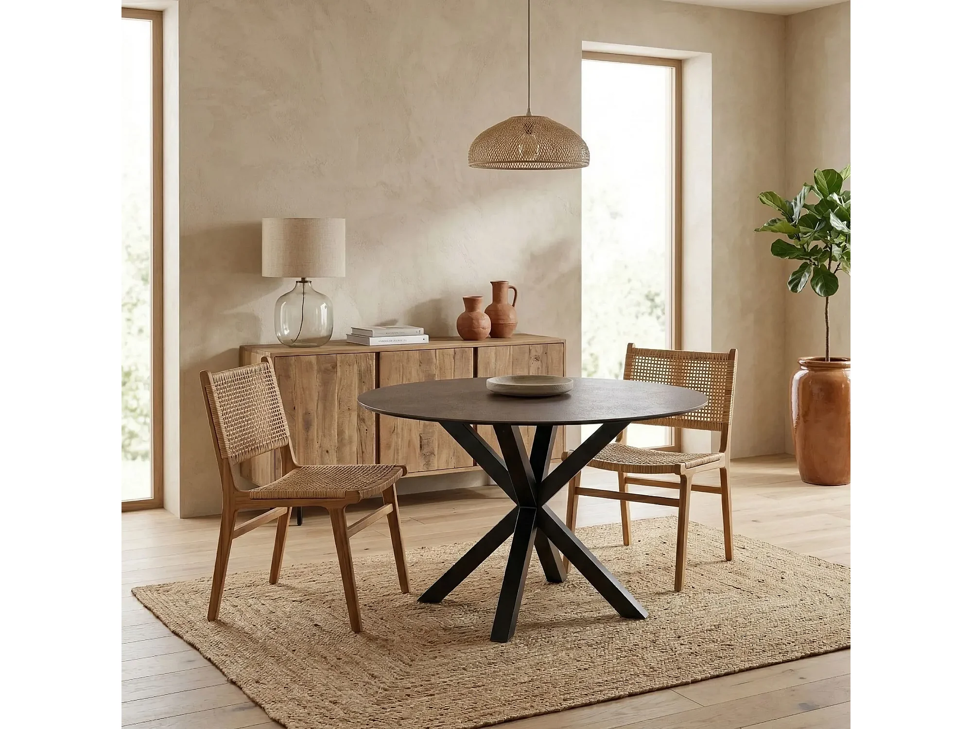 Table de salle à manger ronde en céramique L119 4 personnes - NEIVA